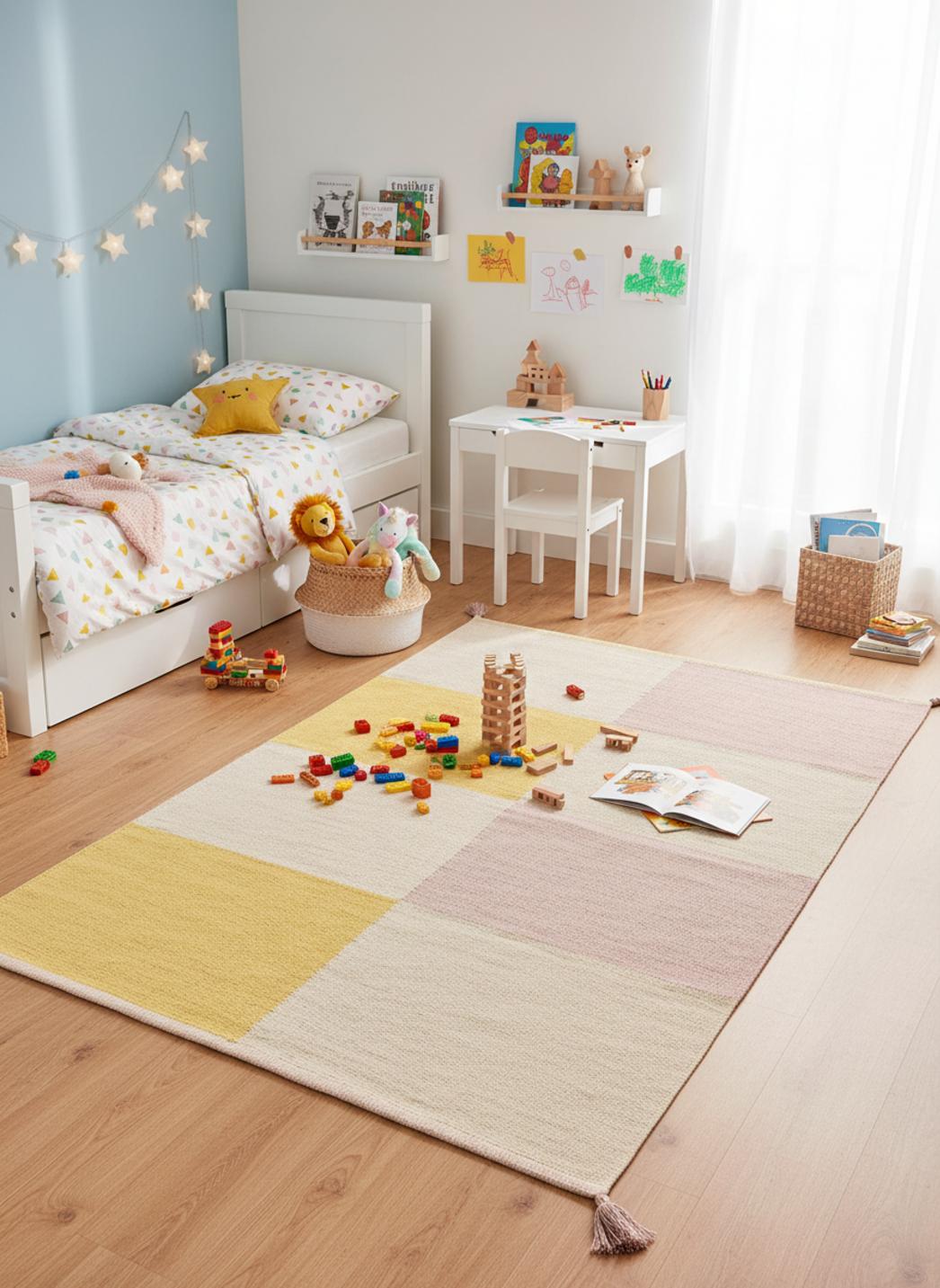 Enfin, en tant que parent, vous aimerez la douceur qui invite au câlin, la stabilité qui rassure les petits pas et la légèreté visuelle qui s'accorde aux textures naturelles de la déco : bois clair, textiles duveteux et murs pastel créent ensemble une atmosphère propice aux routines du soir et aux moments calmes. Pour parcourir d'autres inspirations et trouver le tapis qui complètera ce nid familial, explorez notre collection complète de tapis pour enfants afin de composer une chambre aussi douce que sécurisante.