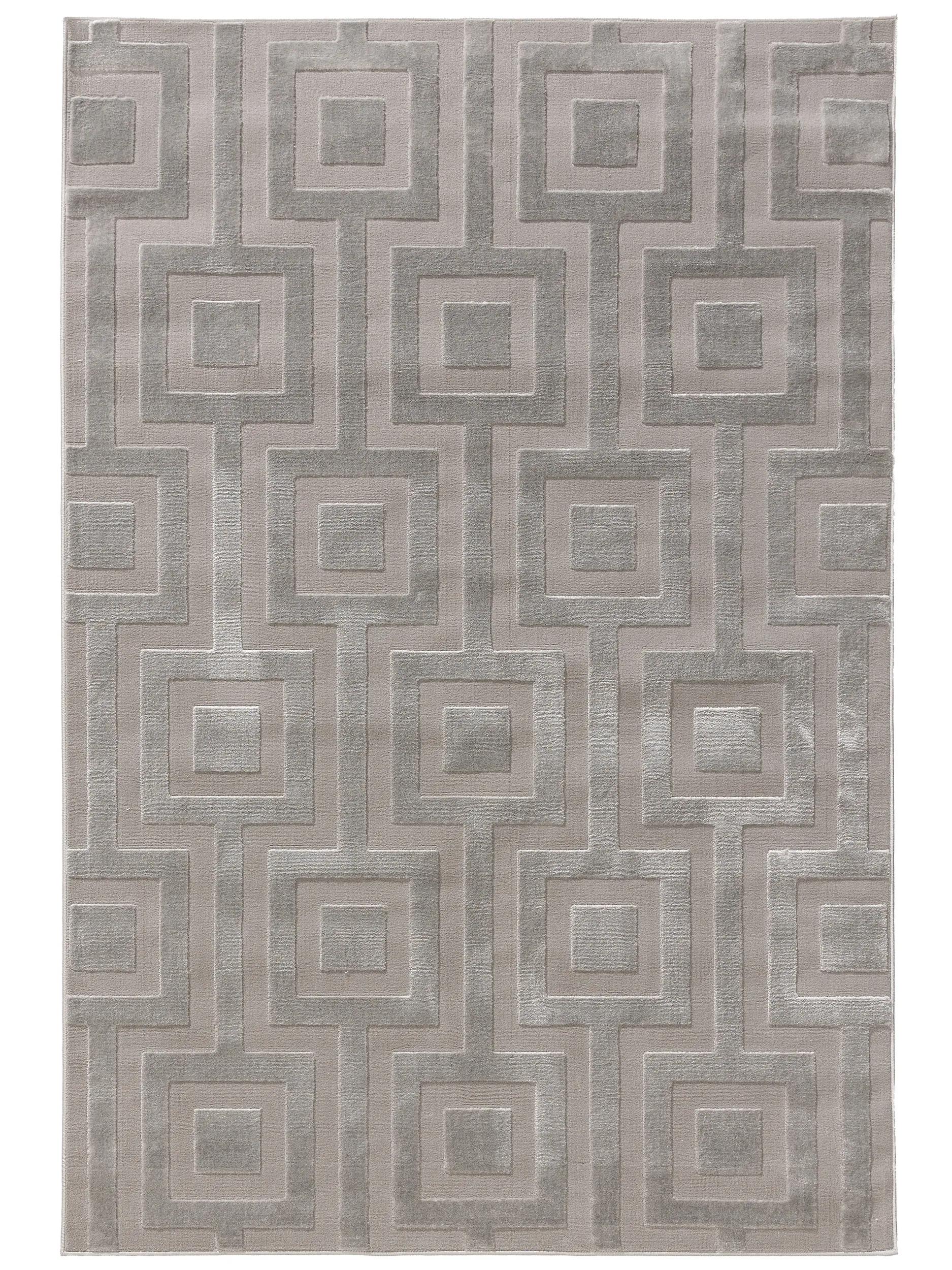 Les lignes s'organisent en formes nettes et répétées, évoquant triangles, chevrons et blocs, tandis que les aplats offrent des respirations calmes. L'ensemble est tempéré par une palette dominée par le gris, qui apporte une neutralité sophistiquée. Le contraste est maîtrisé, entre zones claires et surfaces profondes, pour un effet de profondeur qui allonge la pièce sans la charger.