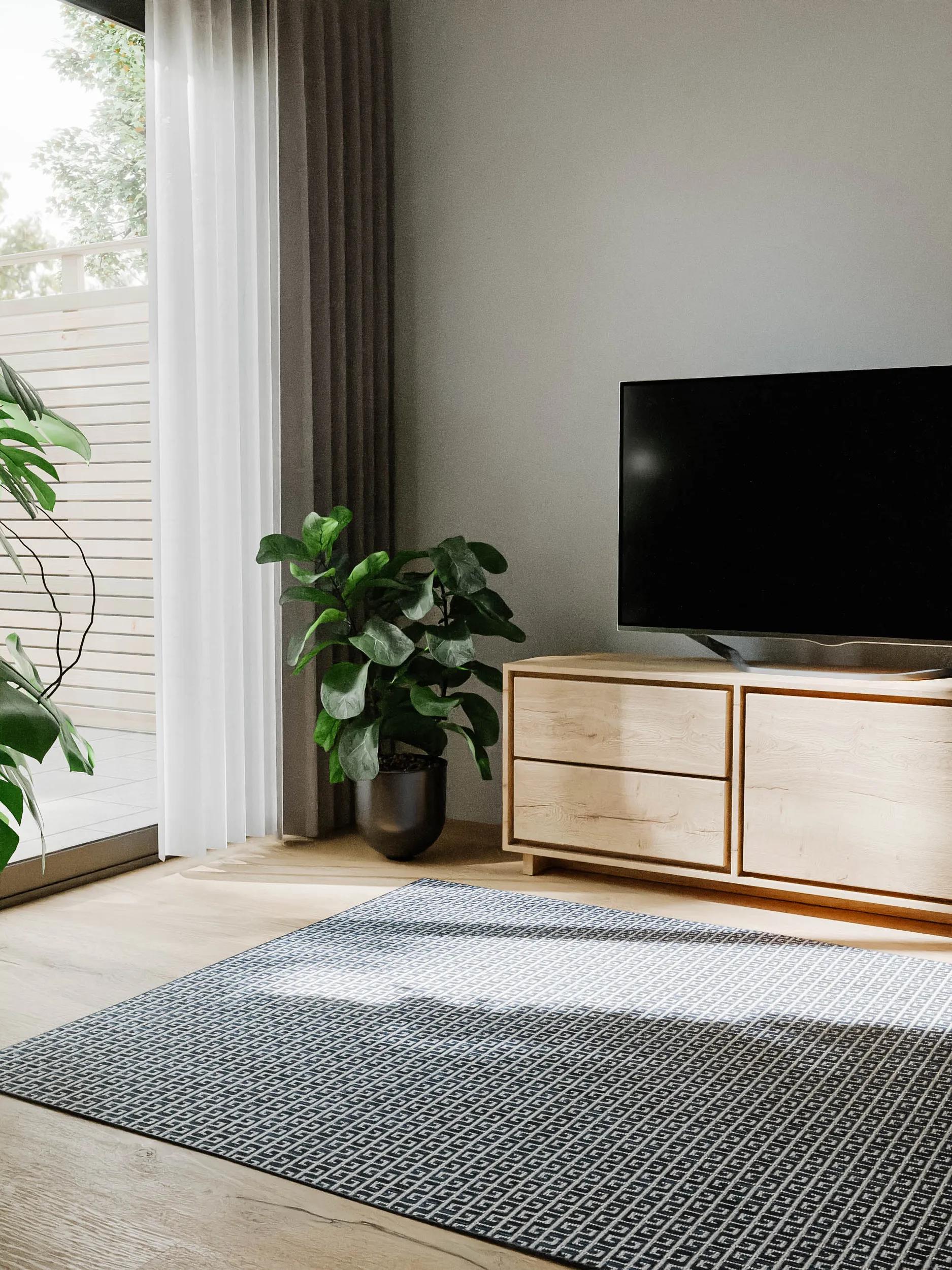 Alliance entre tradition et modernité, ce tapis moderne au motif grec revisite les frises antiques dans une teinte bleue d’une élégance apaisante. Ses lignes régulières, à la fois graphiques et équilibrées, structurent le sol tout en diffusant une lumière douce, idéale pour une terrasse ou un salon d’extérieur au style épuré. Le bleu, symbole de sérénité et de profondeur, s’accorde avec les matières naturelles comme le bois clair ou la pierre, créant un décor harmonieux et intemporel. Grâce à son format de 200x300 cm, il unifie les volumes tout en apportant une touche d’allure méditerranéenne. Ce modèle s’inscrit naturellement dans la collection de tapis d’extérieur, dédiée à l’art de vivre au grand air avec élégance et confort. Pour prolonger cette atmosphère lumineuse et équilibrée, explorez aussi nos tapis d’extérieur bleus, parfaits pour composer des espaces inspirés de la mer et du soleil. Un tapis à la géométrie raffinée, qui fait souffler un vent méditerranéen sur la terrasse.