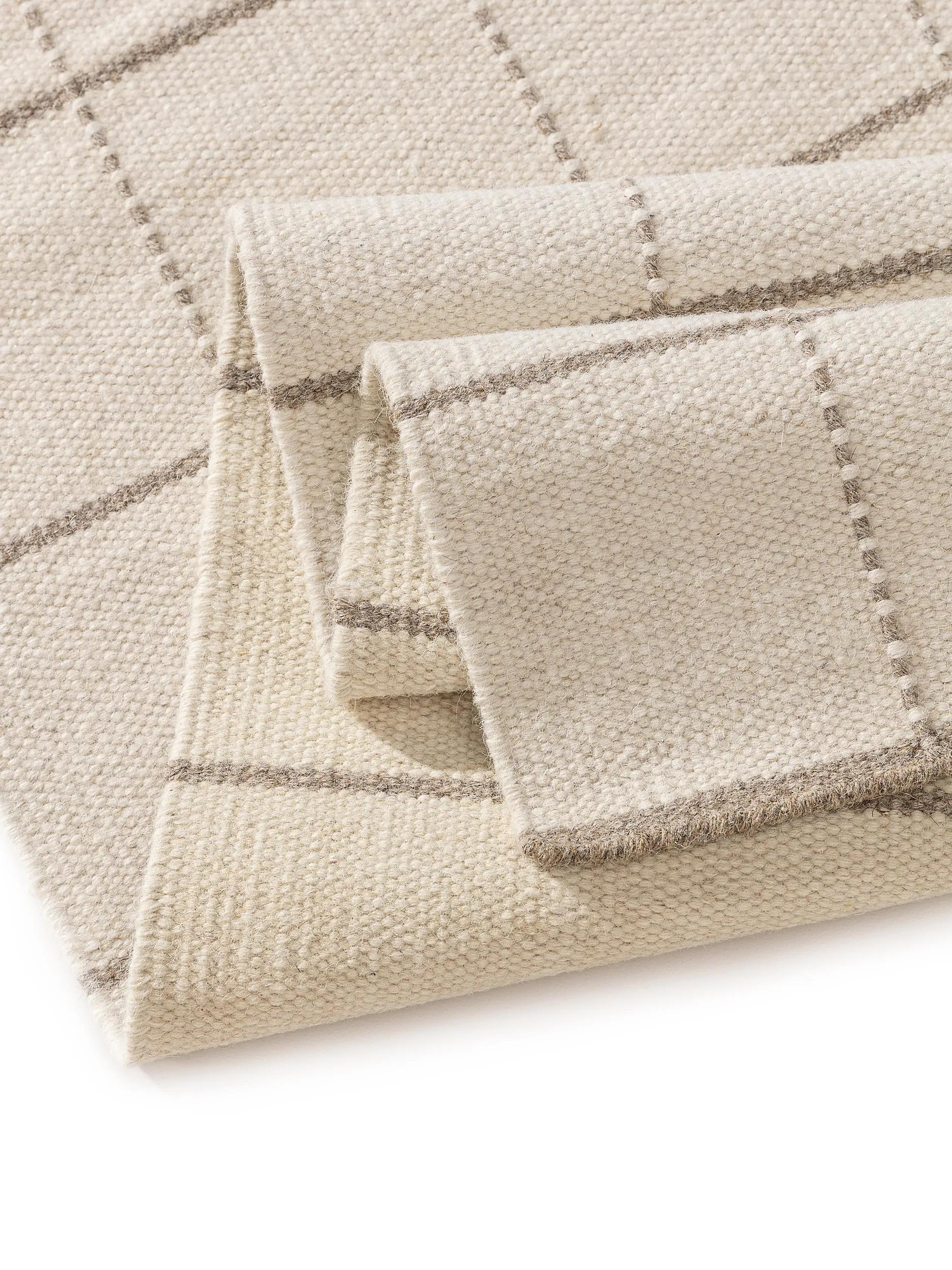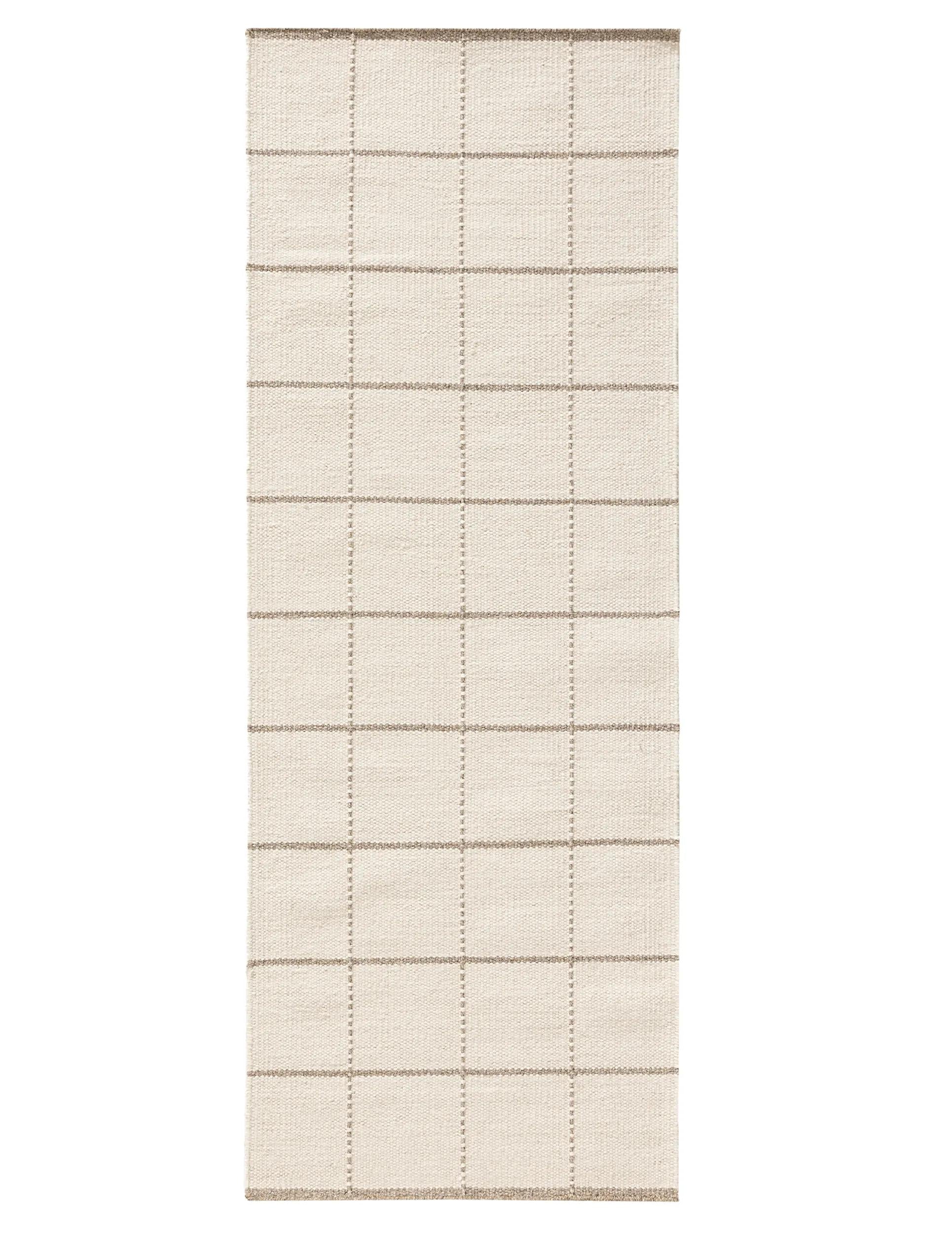 Tapis moderne motif grille géométrique descente de lit crème en laine 70x200 cm