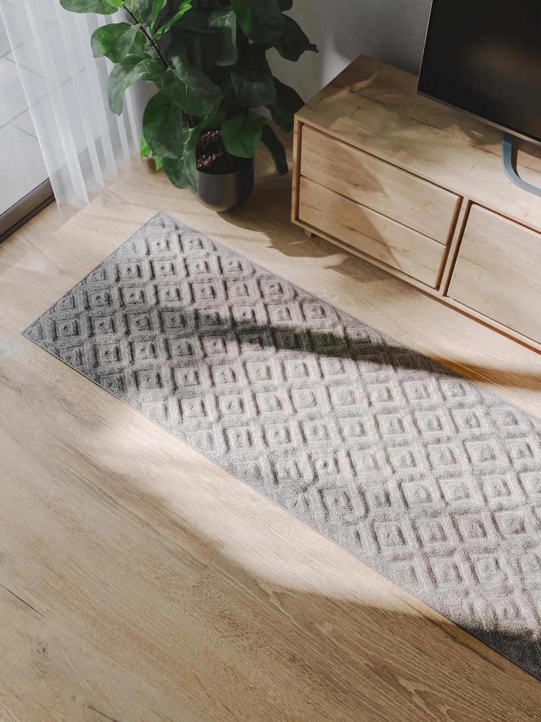Tapis moderne motif losange relief de couloir gris 70x200 cm