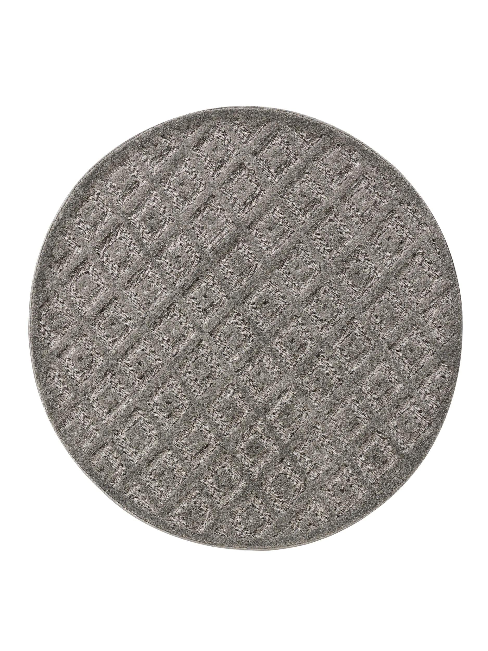 Tapis moderne motif losange relief rond gris 160 cm de diamètre