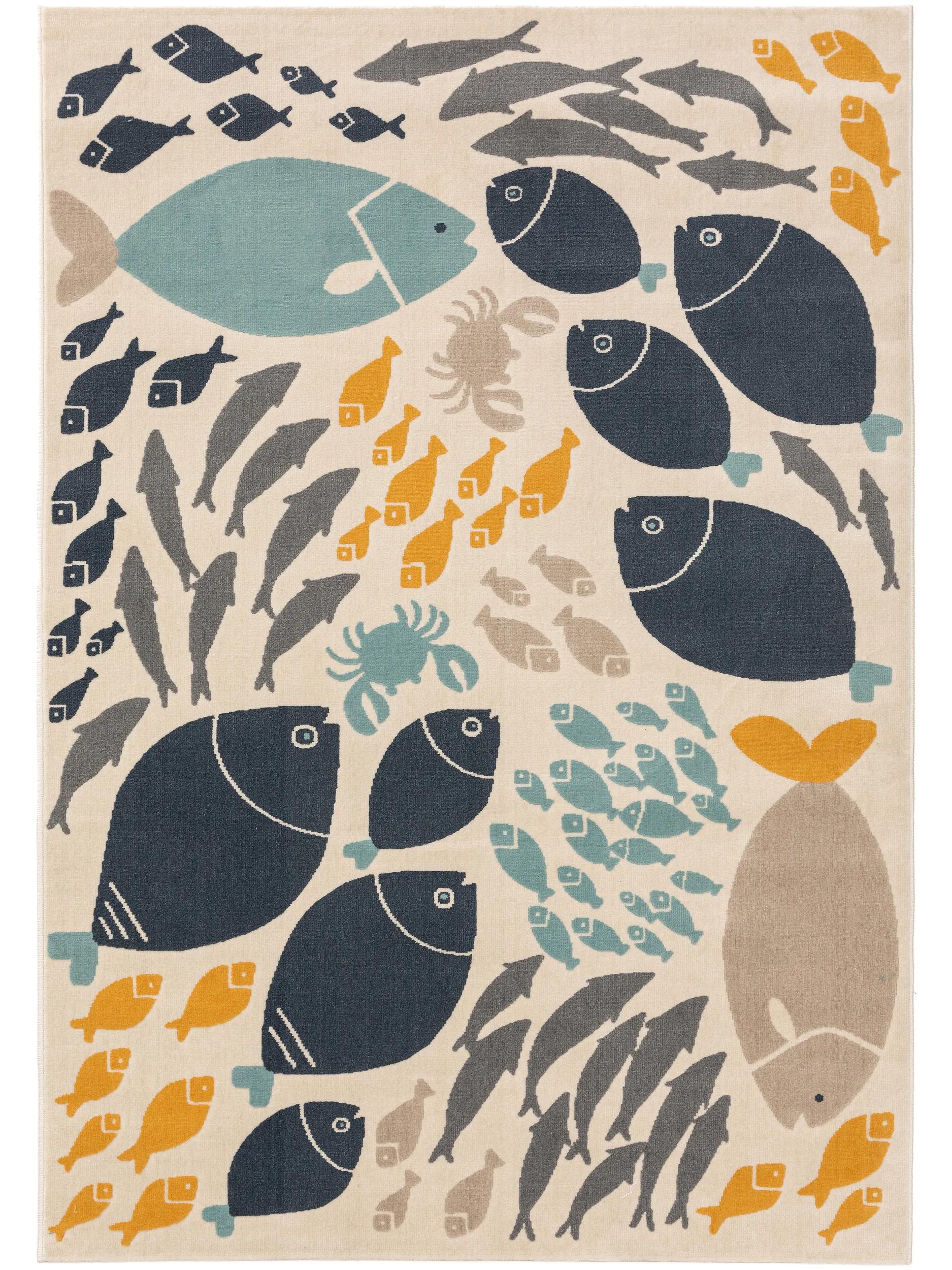 Tapis moderne motif marin enfant beige bleu et orange 80x150 cm