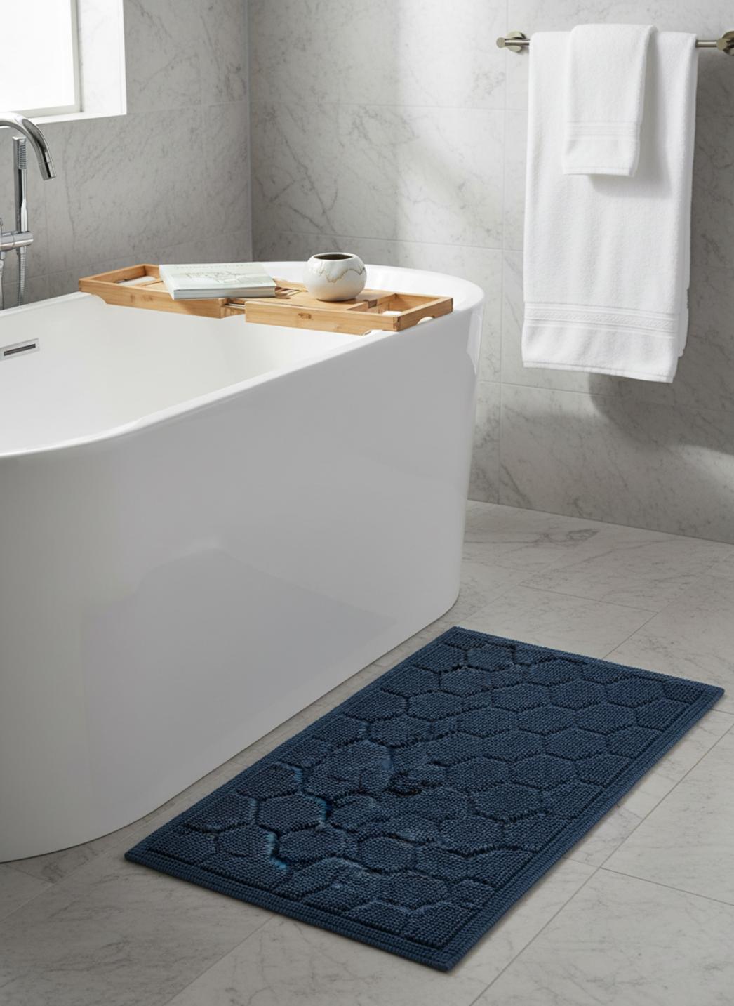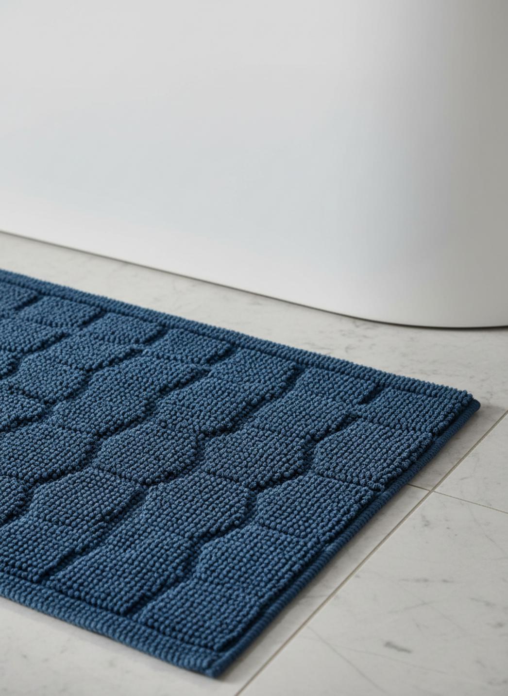 Tapis moderne motif nid d'abeille de bain bleu foncé en coton 50x80 cm