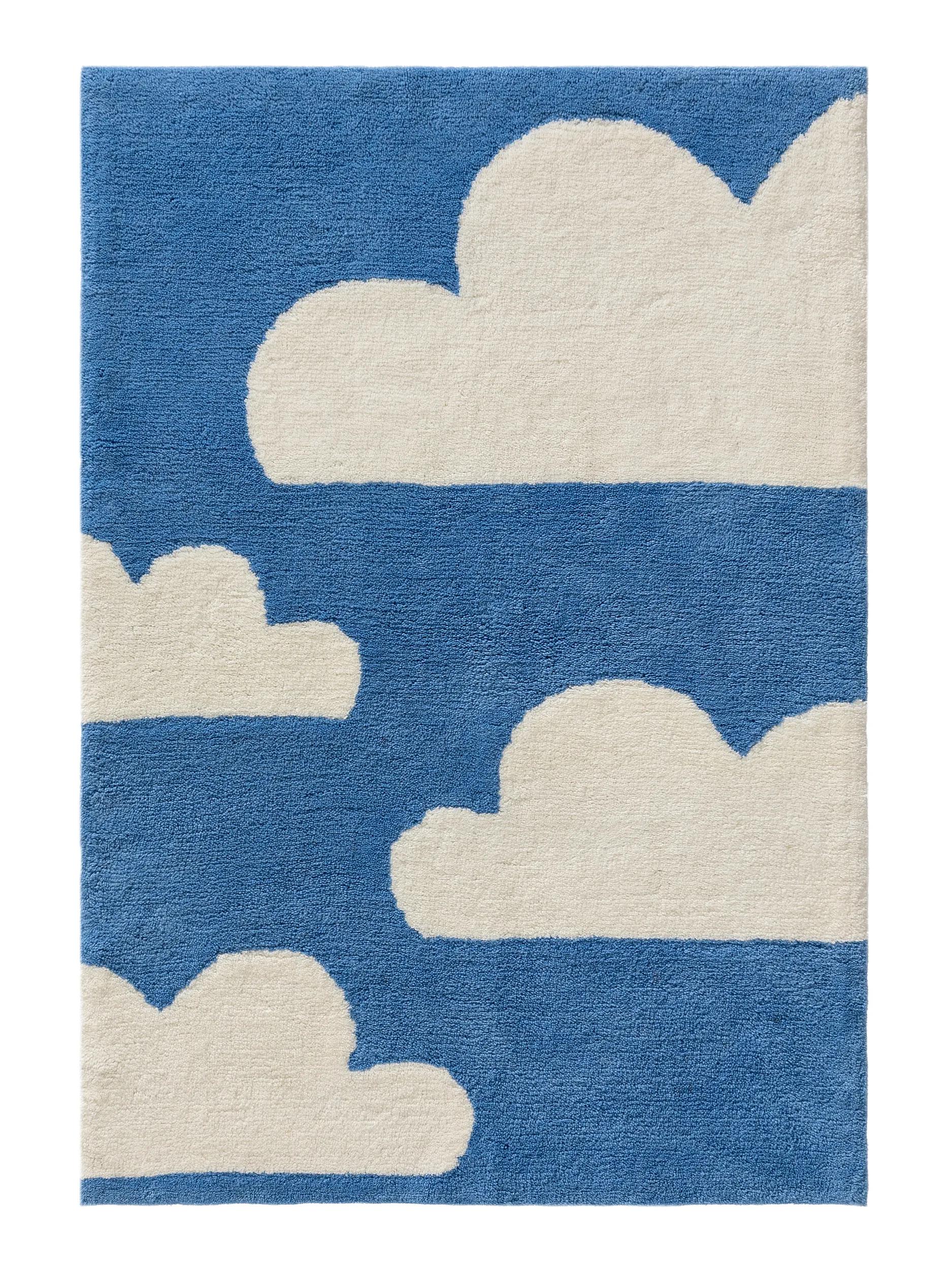 Tapis moderne motif nuage enfant bleu et blanc en laine 160x230 cm