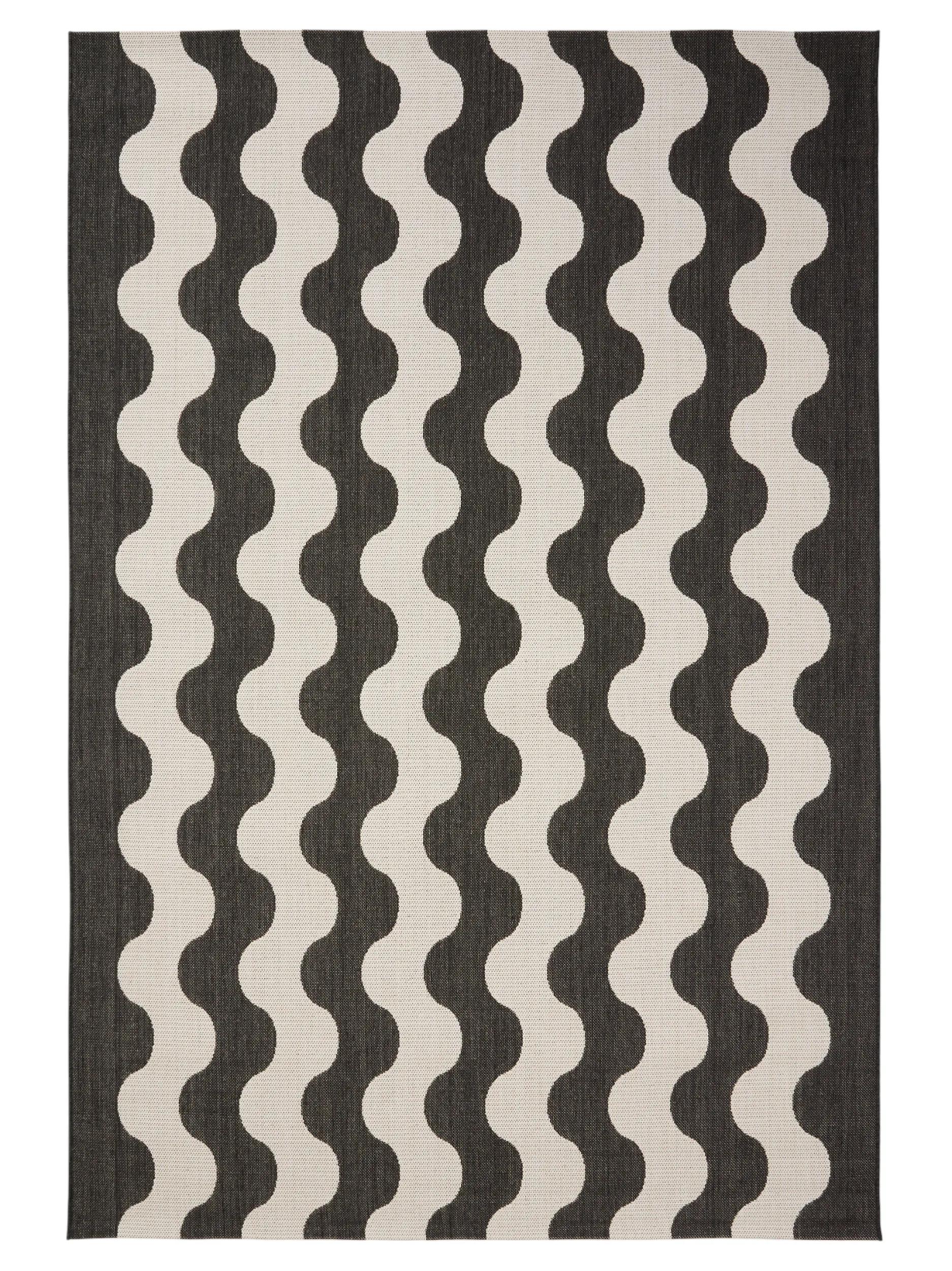 Tapis moderne motif vague noir et blanc d'intérieur et d'extérieur 160x230 cm