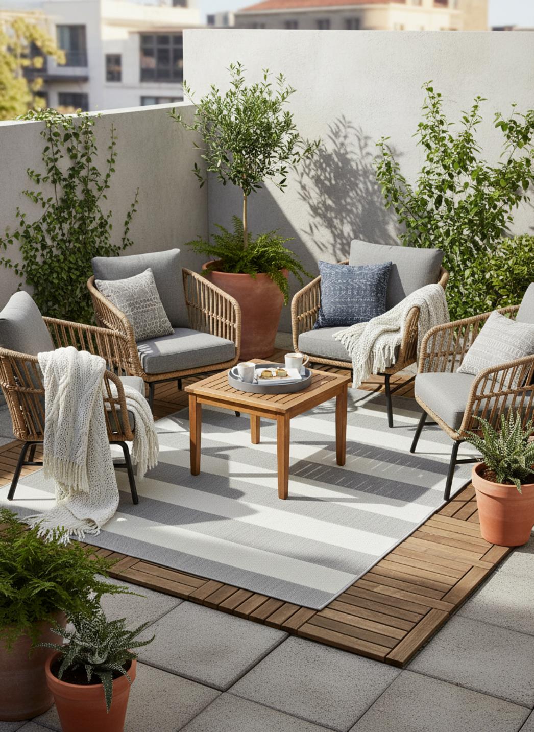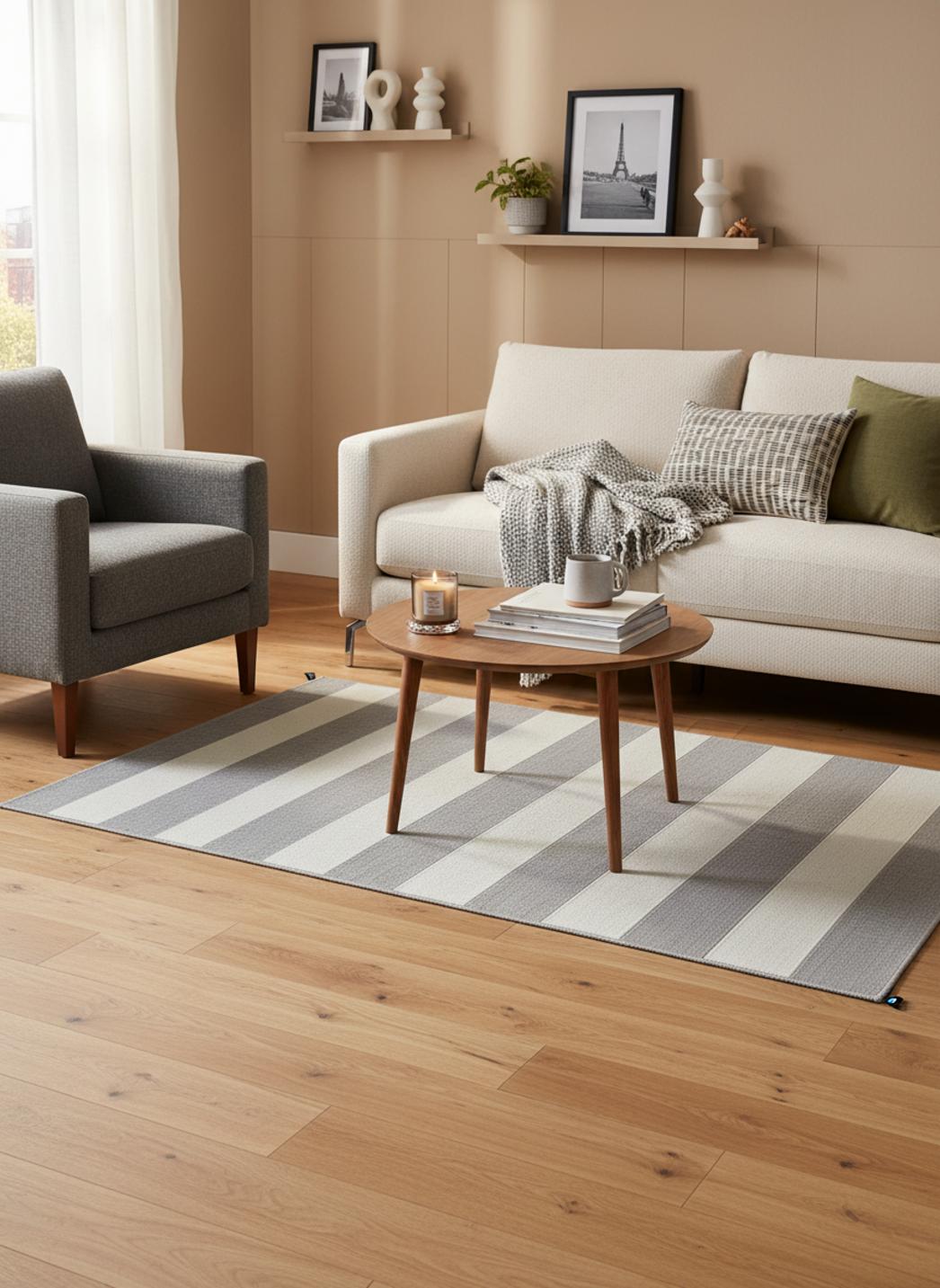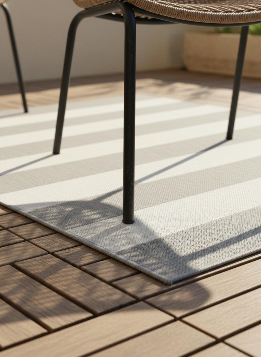 Dans la lumière douce d’un après-midi d’été, les lignes du tapis moderne se dessinent comme un jeu graphique sur la terrasse ou le balcon. Son motif rayé gris apporte une note de rythme et de fraîcheur, subtilement équilibrée entre neutralité et esprit ludique. Ce modèle compact se glisse avec aisance sous un petit salon de jardin, devant une porte-fenêtre ou dans un coin lecture extérieur, créant une zone accueillante où l’on aime marcher pieds nus. Le gris, dans sa palette nuancée, dialogue facilement avec les teintes naturelles du bois, les tissus clairs, ou encore la verdure environnante. Sa texture souple capte la lumière du jour et structure l’espace sans jamais l’alourdir. Idéal pour les moments de jeux, de détente ou de partage, il apporte cette touche de confort visuel qui transforme une terrasse ou un balcon en véritable prolongement de la maison. Pensé pour résister aux passages fréquents tout en conservant une allure graphique, ce tapis rectangulaire 80x150 cm est une invitation à redessiner les petits espaces extérieurs avec goût et légèreté. Il évoque la simplicité heureuse des beaux jours, quand l’air est doux et que chaque recoin devient un lieu de vie à part entière.