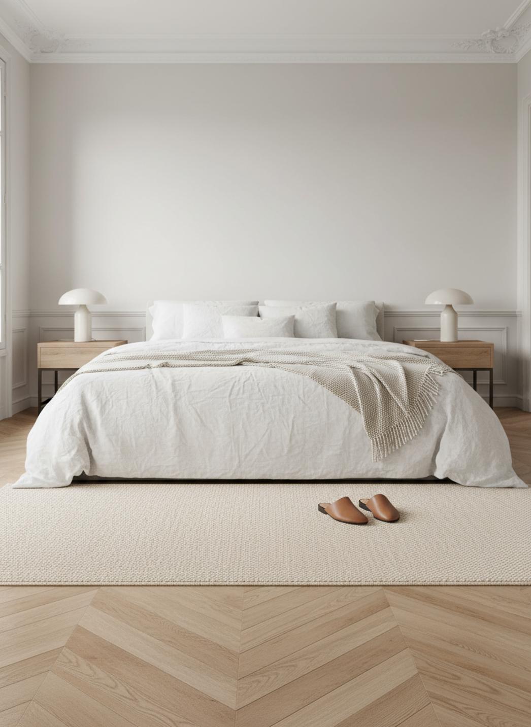 Dans un salon, une chambre ou un bureau, il fonctionne comme un point d’équilibre. Les formes épurées du mobilier trouvent un compagnon discret et élégant, la texture affirme une présence douce et le ton neutre laisse la place aux accessoires pour créer des contrastes mesurés et des harmonies intentionnelles.
