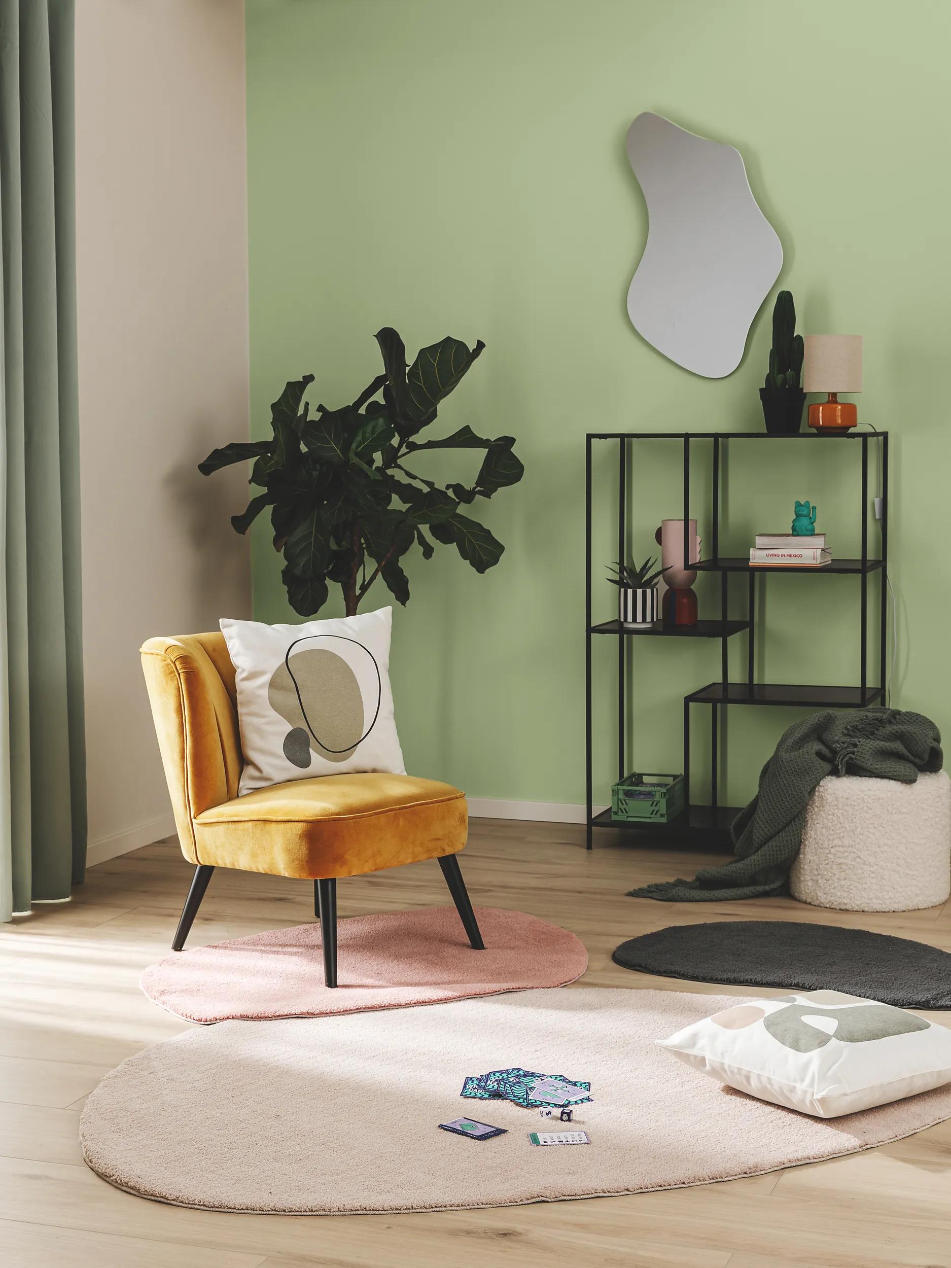 Son impact décoratif se lit autant dans l'ensemble que dans le détail : il met en valeur une table basse aux contours modernes, souligne une chaise design et recentre l'attention sur les volumes de la pièce. En jouant la carte de la sobriété, il magnifie et apaise l'espace sans surcharge, pour une esthétique contemporaine et réconfortante.