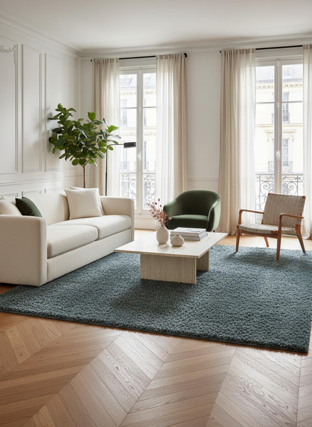 En situation, ce tapis modifie subtilement la perception d’une pièce : il invite à l’apaisement, met en valeur le mobilier contemporain et tempère les lignes du mobilier le plus graphique. Il enrichit une chambre d’une note moelleuse, réchauffe un salon minimaliste et crée un point focal harmonieux dans une entrée. Le toucher, la couleur et la coupe travaillent de concert pour offrir une présence élégante sans ostentation.