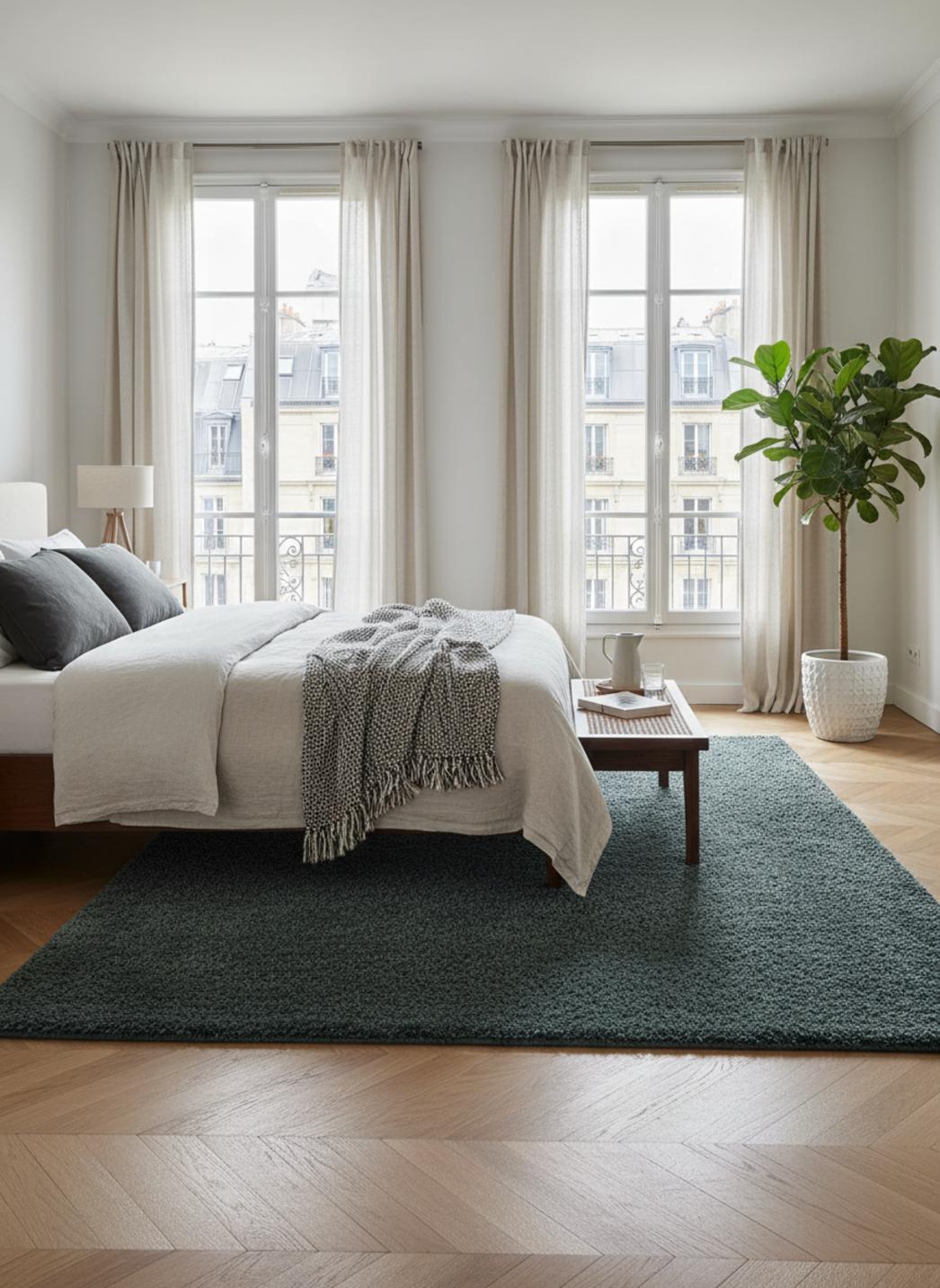 Un souffle contemporain dessine l’espace avec une présence discrète et raffinée, pensée pour les intérieurs au design épuré. Le travail visuel joue sur la simplicité d’un tapis uni où la matière prend le devant de la scène, affirmant une esthétique résolument moderne sans surcharge. L’ensemble invite à la contemplation, offrant une ligne nette et une douceur visuelle qui structure la pièce sans l’alourdir.