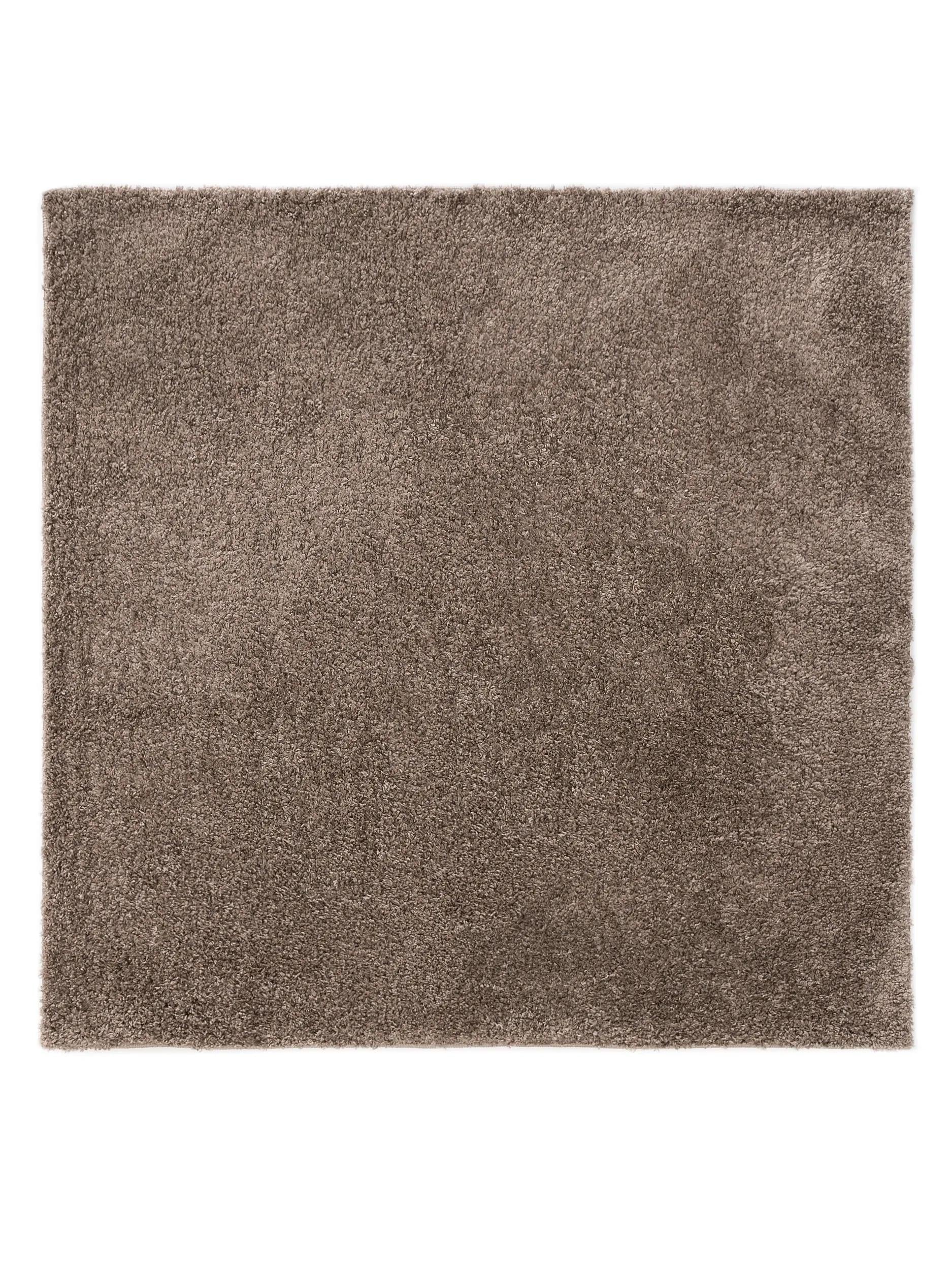 Tapis moderne uni poils longs frisés carré taupe lavable 200x200 cm
