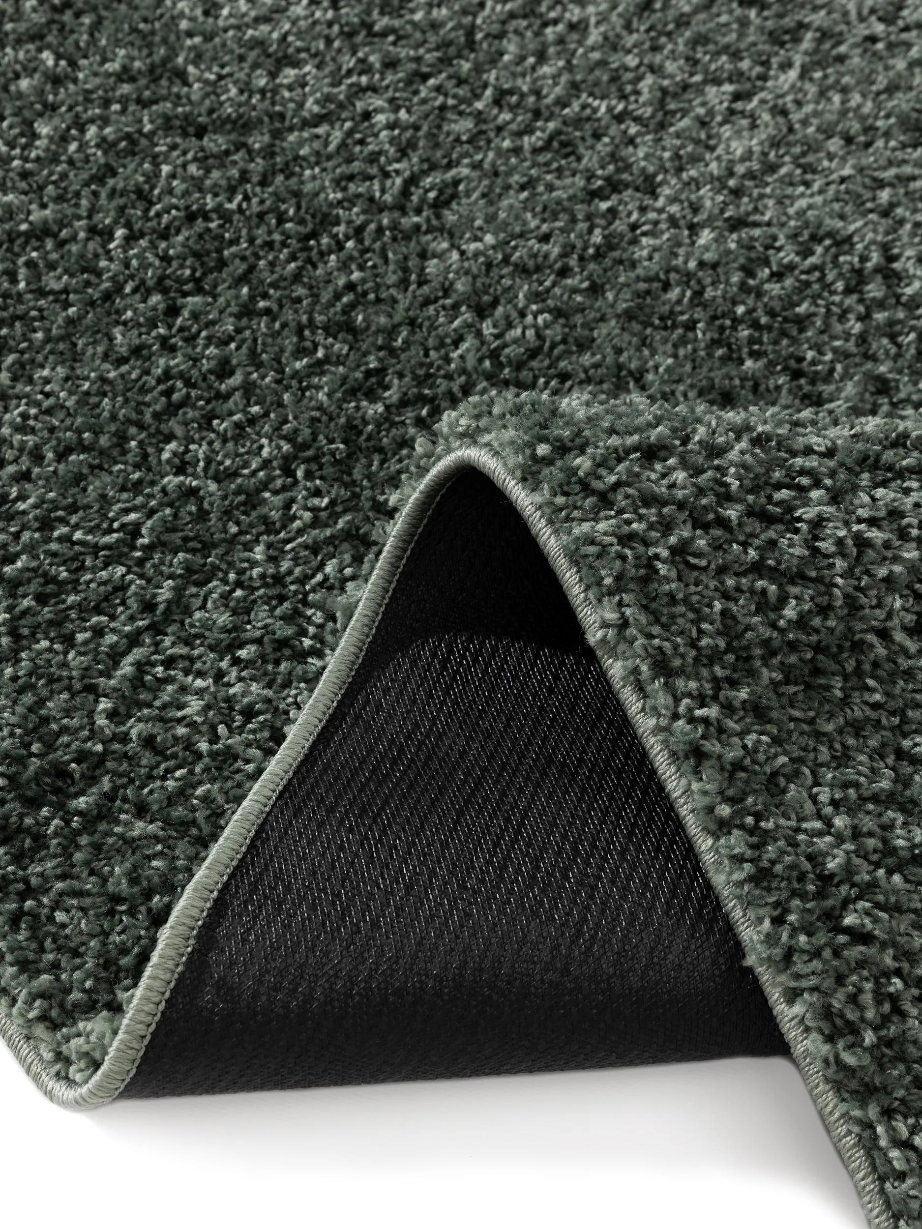 Tapis moderne uni poils longs frisés carré vert lavable 200x200 cm