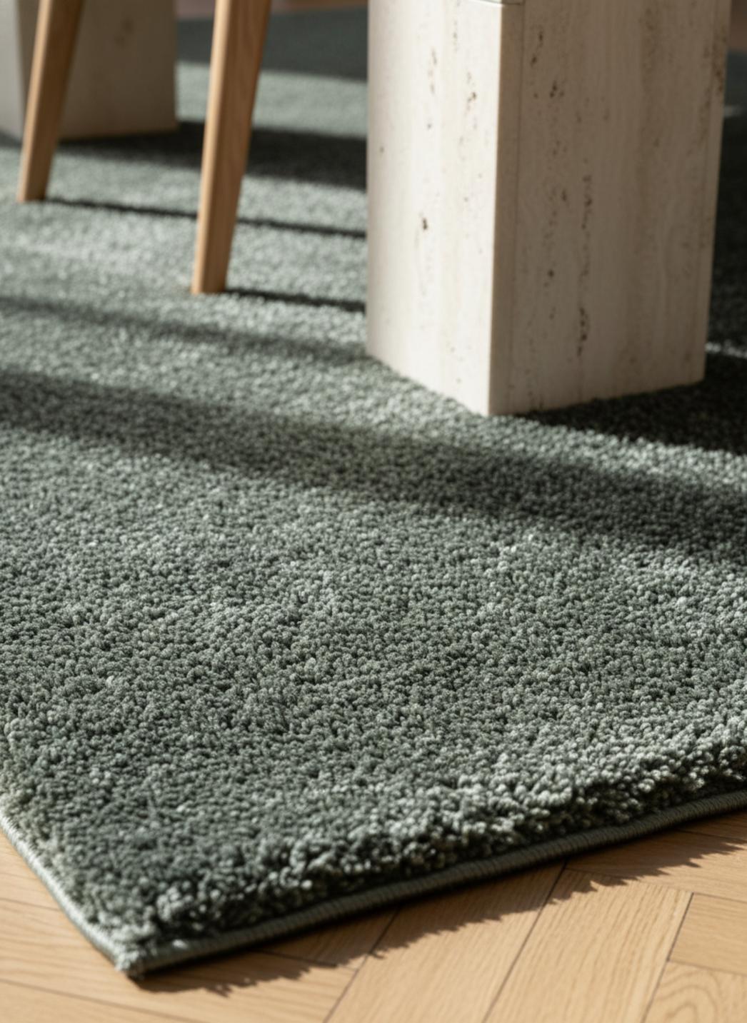 Sous le pas, la matière révèle son caractère sensuel : un jeu de poils généreux, des mèches longs et légèrement frisés qui captent la lumière et invitent au repos. Le toucher est dense sans être lourd, une tactile douceur qui transforme chaque coin en lieu accueillant. Le dessin se fait discret, privilégiant le volume du poil plutôt qu’un motif imposant, pour une élégance résolument contemporaine.