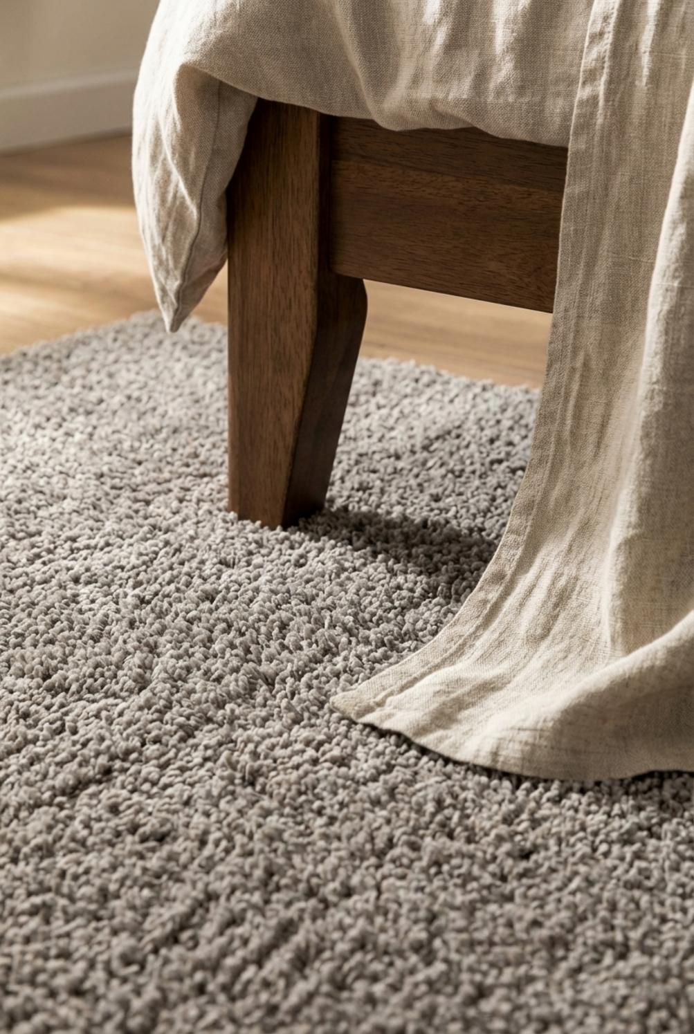 La matière révèle une invitation tactile : des poils travaillés pour allonger la silhouette du tissu, des longs replis qui captent la lumière et des mèches frisés qui apportent du relief. Ce contraste entre douceur et mouvement transforme la marche en un geste sensuel, et le toucher en promesse de confort chaleureux, idéal pour un salon ou une chambre où l’on ose rester pieds nus.