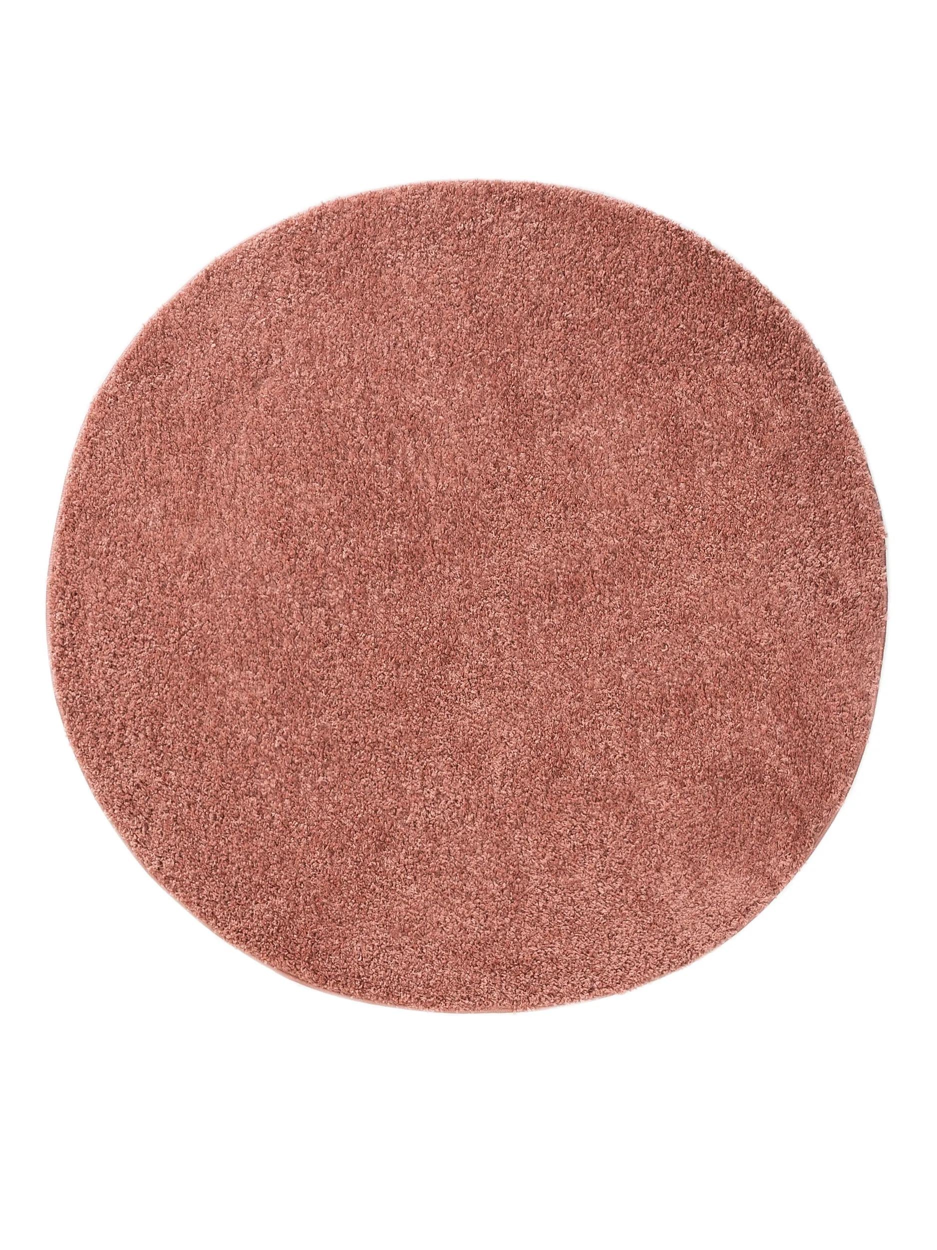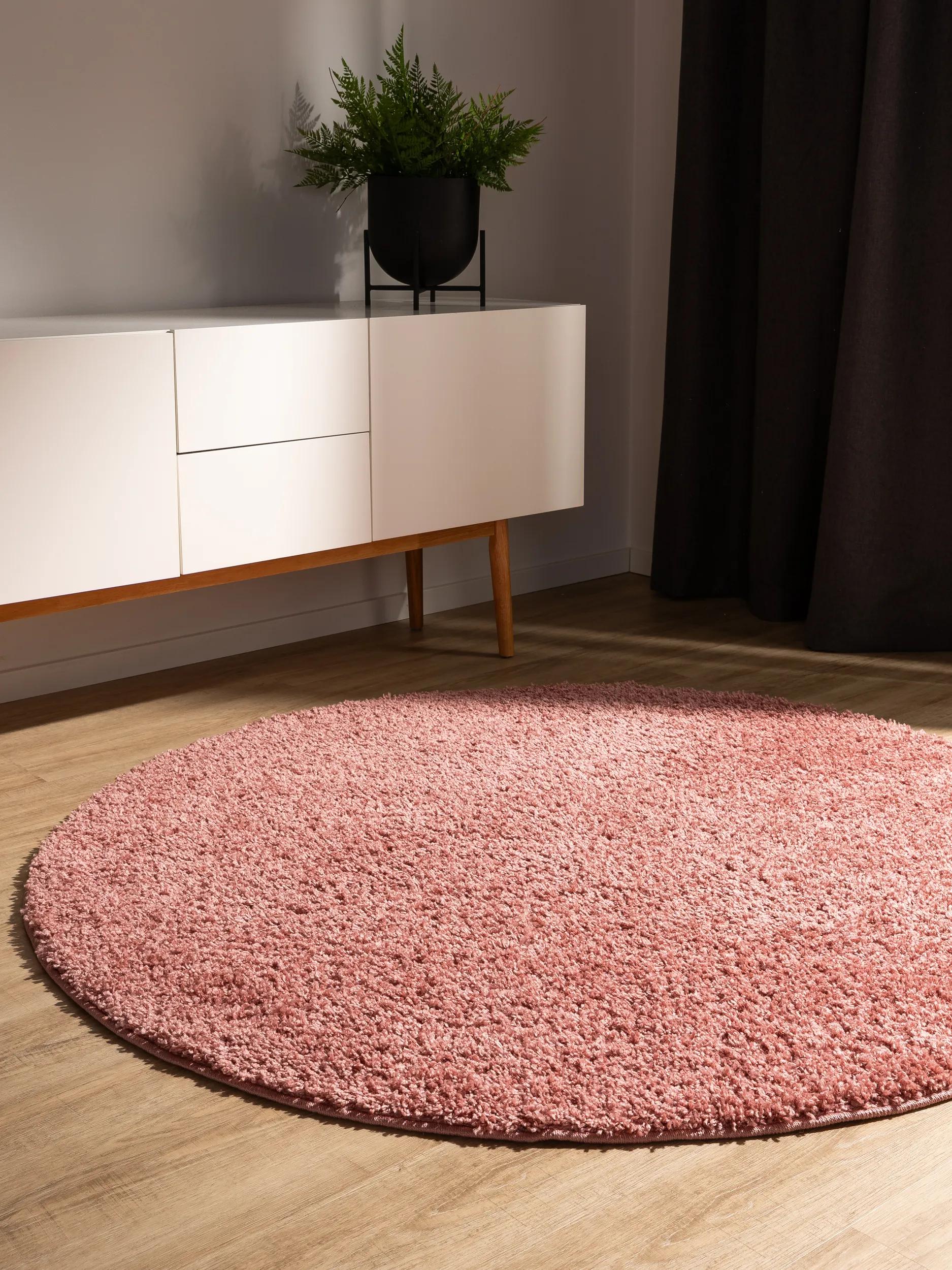 Tapis moderne uni poils longs frisés rond rose lavable 120 cm de diamètre