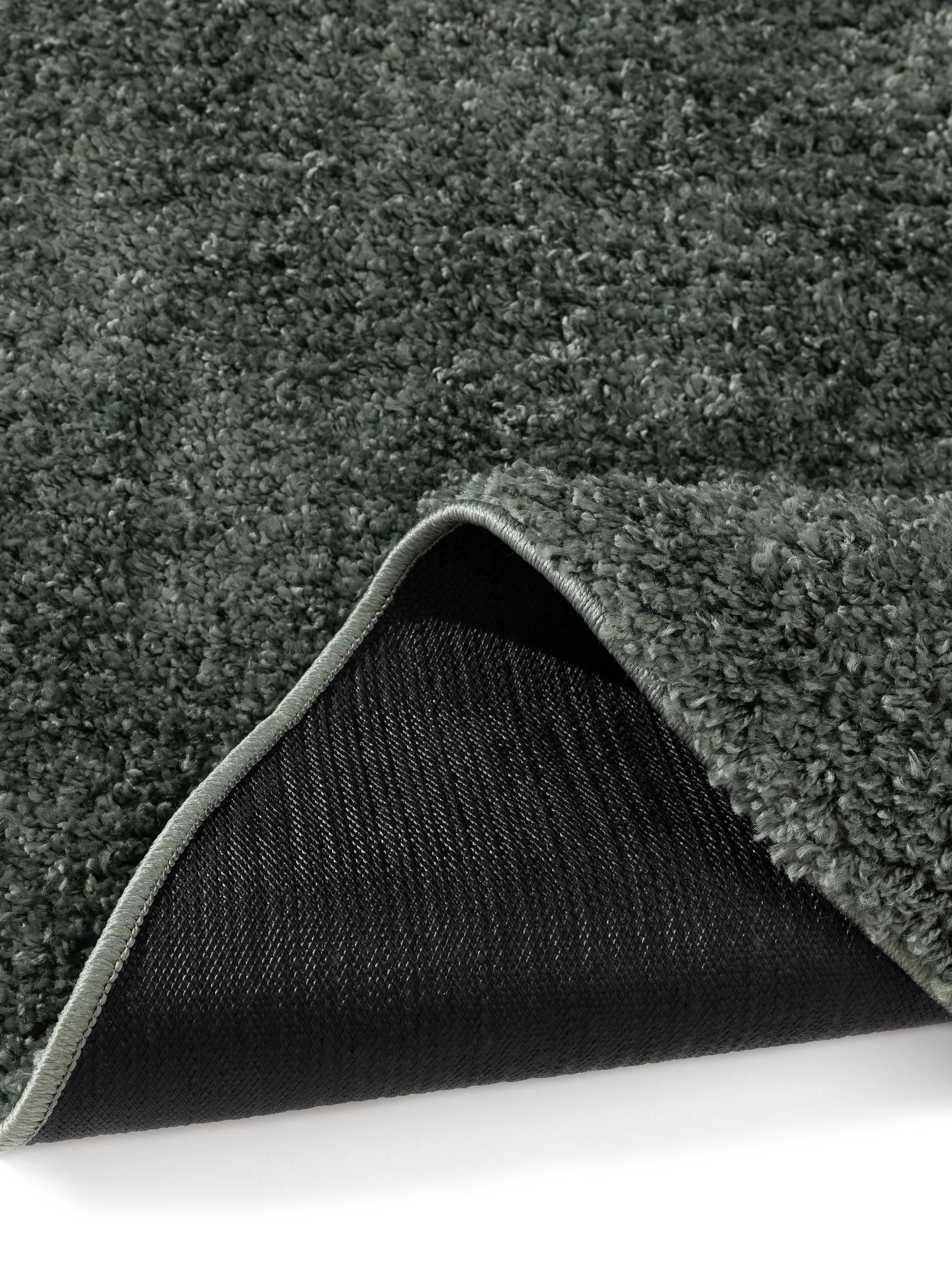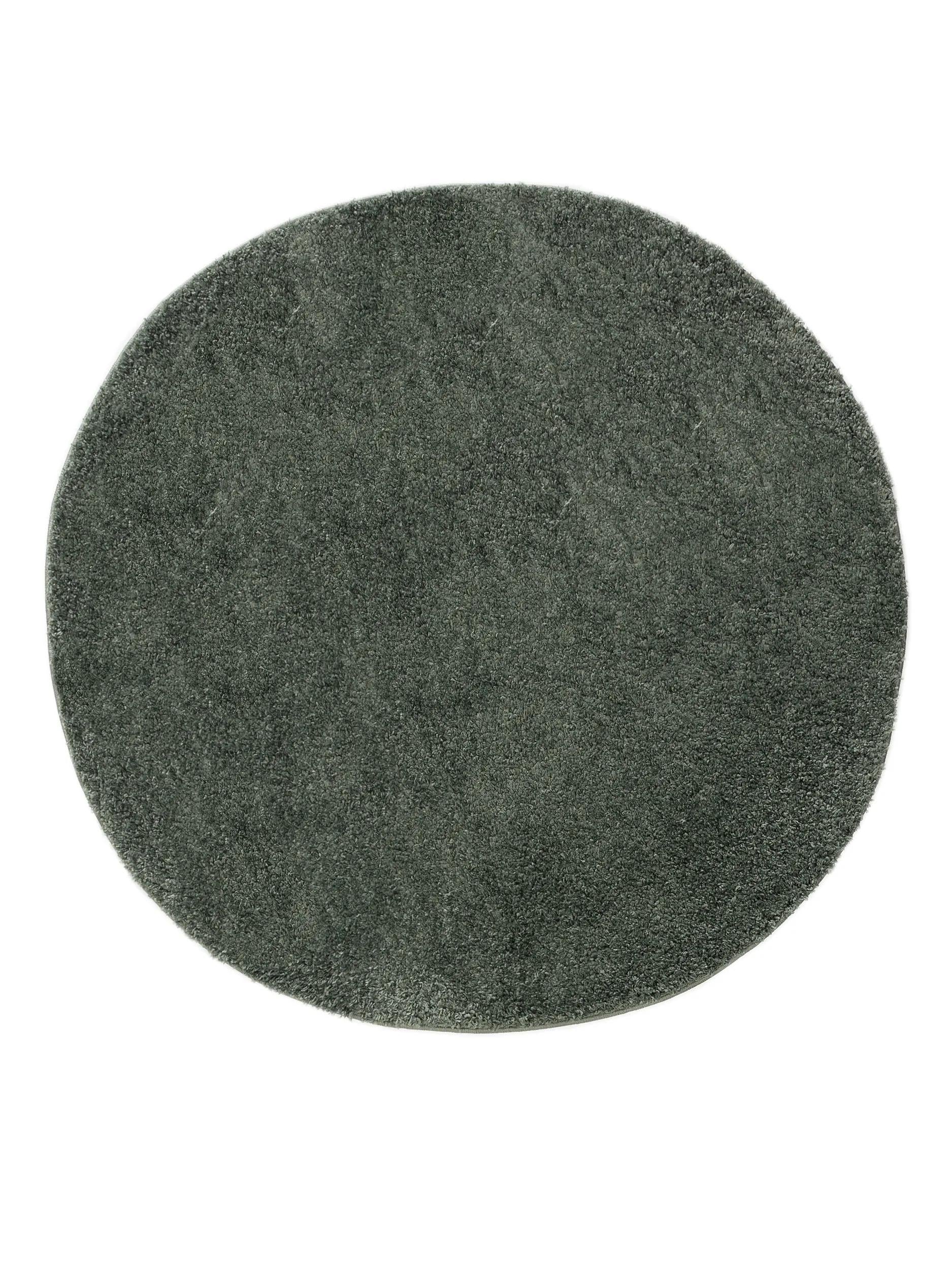 Tapis moderne uni poils longs frisés rond vert lavable 80 cm de diamètre