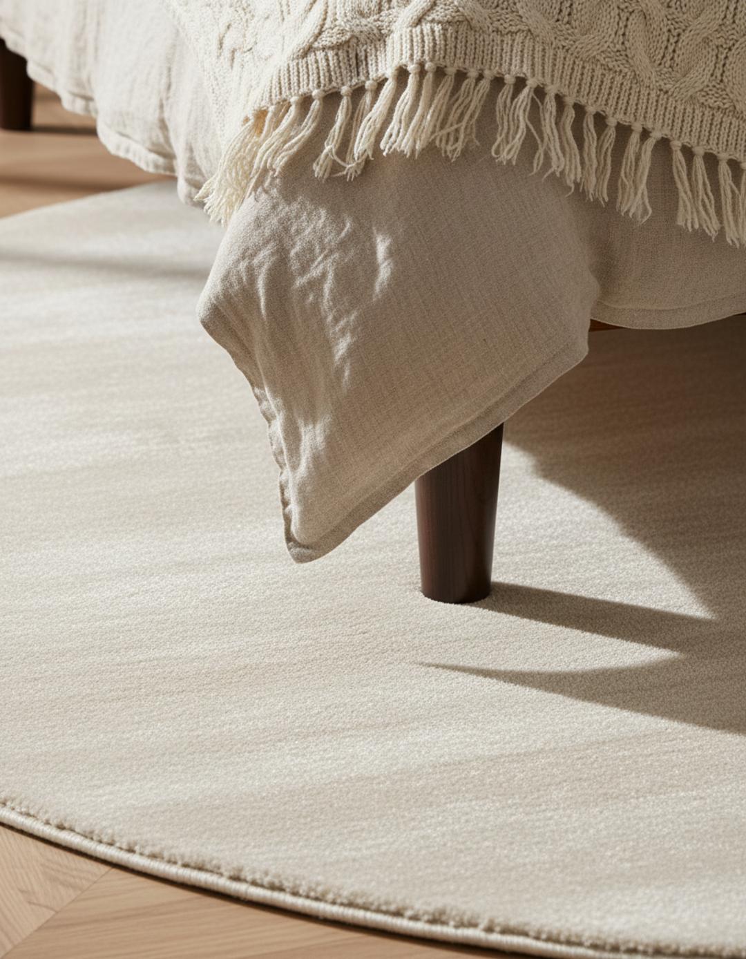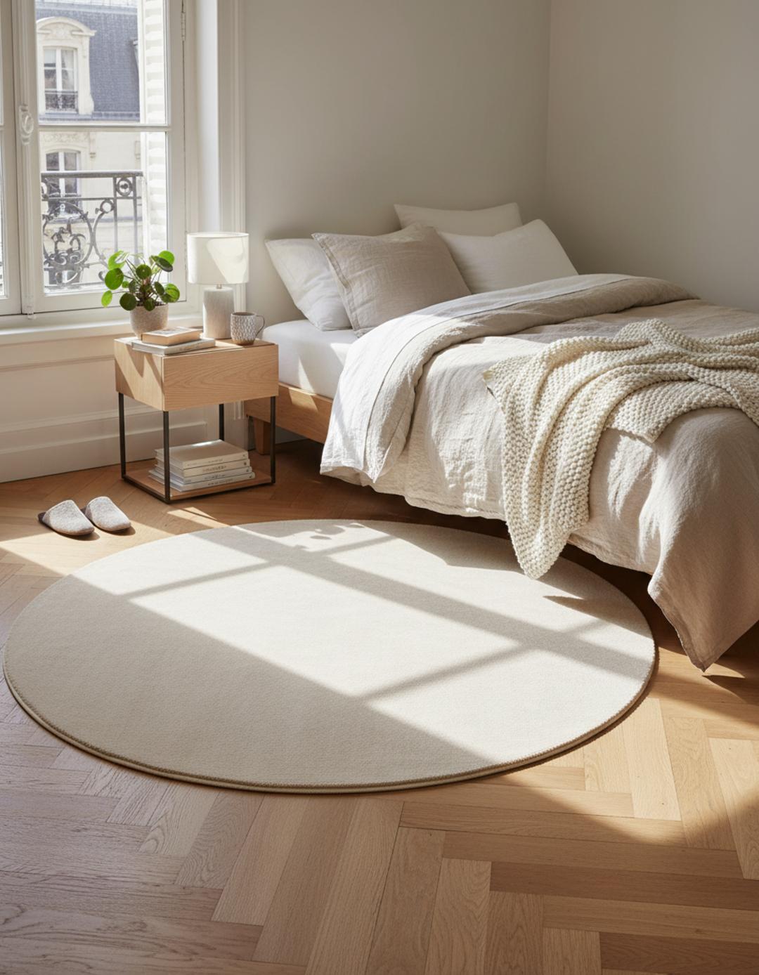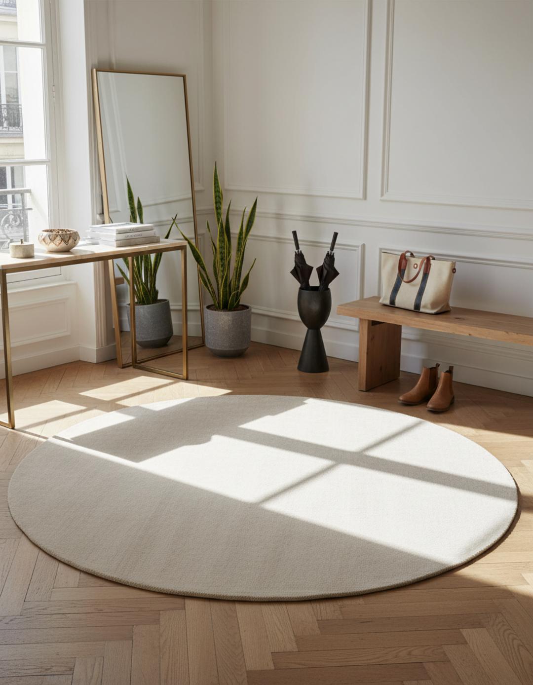 Pensé pour devenir un point d’ancrage discret, ce modèle rond dialogue avec le mobilier et les volumes sans rivaliser. Sa dimension de 120 cm de diamètre invite à définir une zone intime au milieu d’un salon, au pied d’un fauteuil design ou sous une table basse basse, créant un îlot de confort visuel. La forme circulaire adoucit les angles d’un intérieur structuré, génère une circulation fluide et instaure un centre paisible autour duquel organiser la décoration.