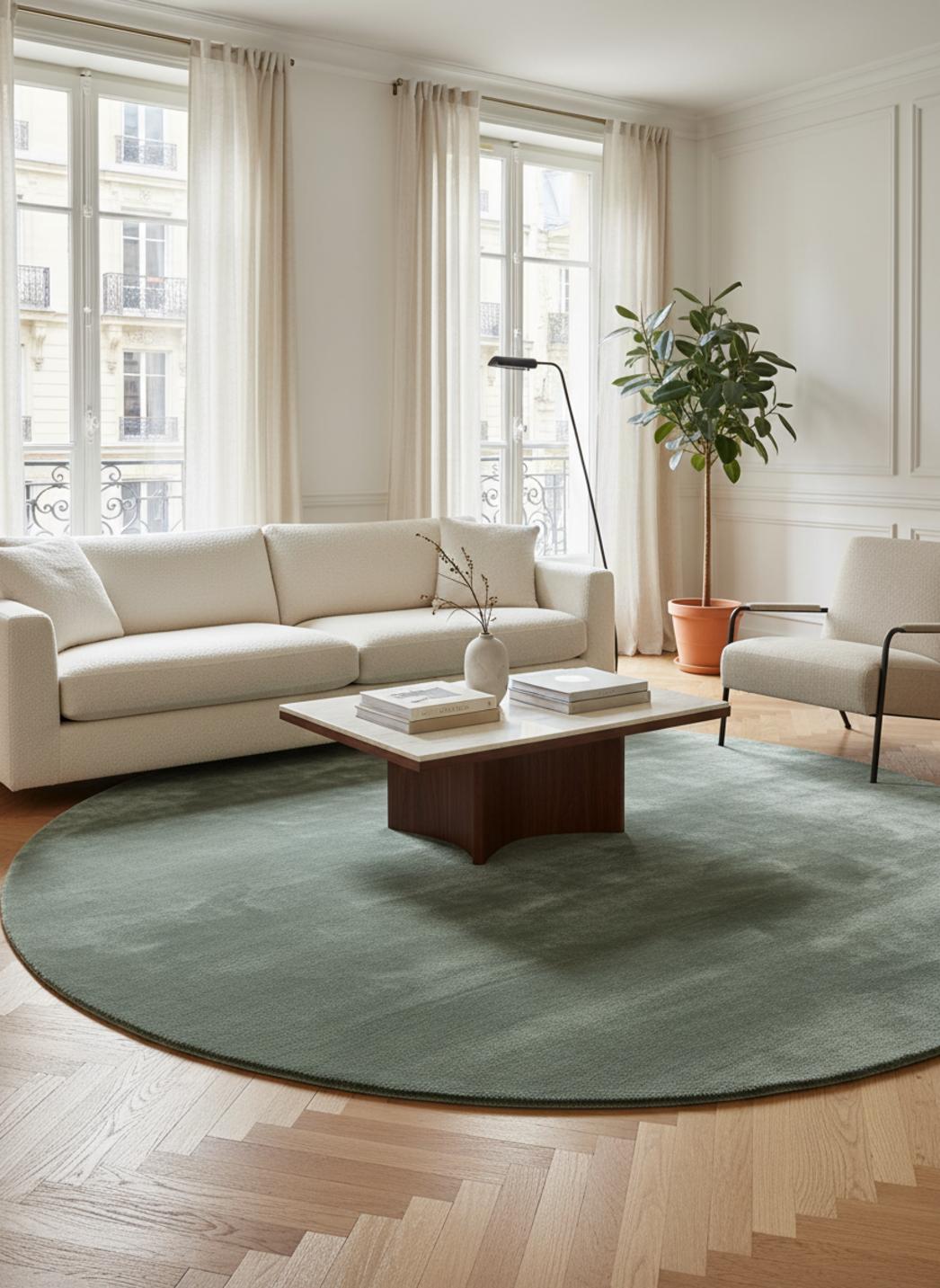 Dans une pièce baignée de lumière, ce tapis incarne une élégance discrète pensée pour un intérieur contemporain. Sa silhouette rond dessine un point focal apaisant, invitant au calme et à la circulation douce. La surface uni joue la carte de la sobriété, laissant respirer le mobilier tout en affirmant une présence subtile.