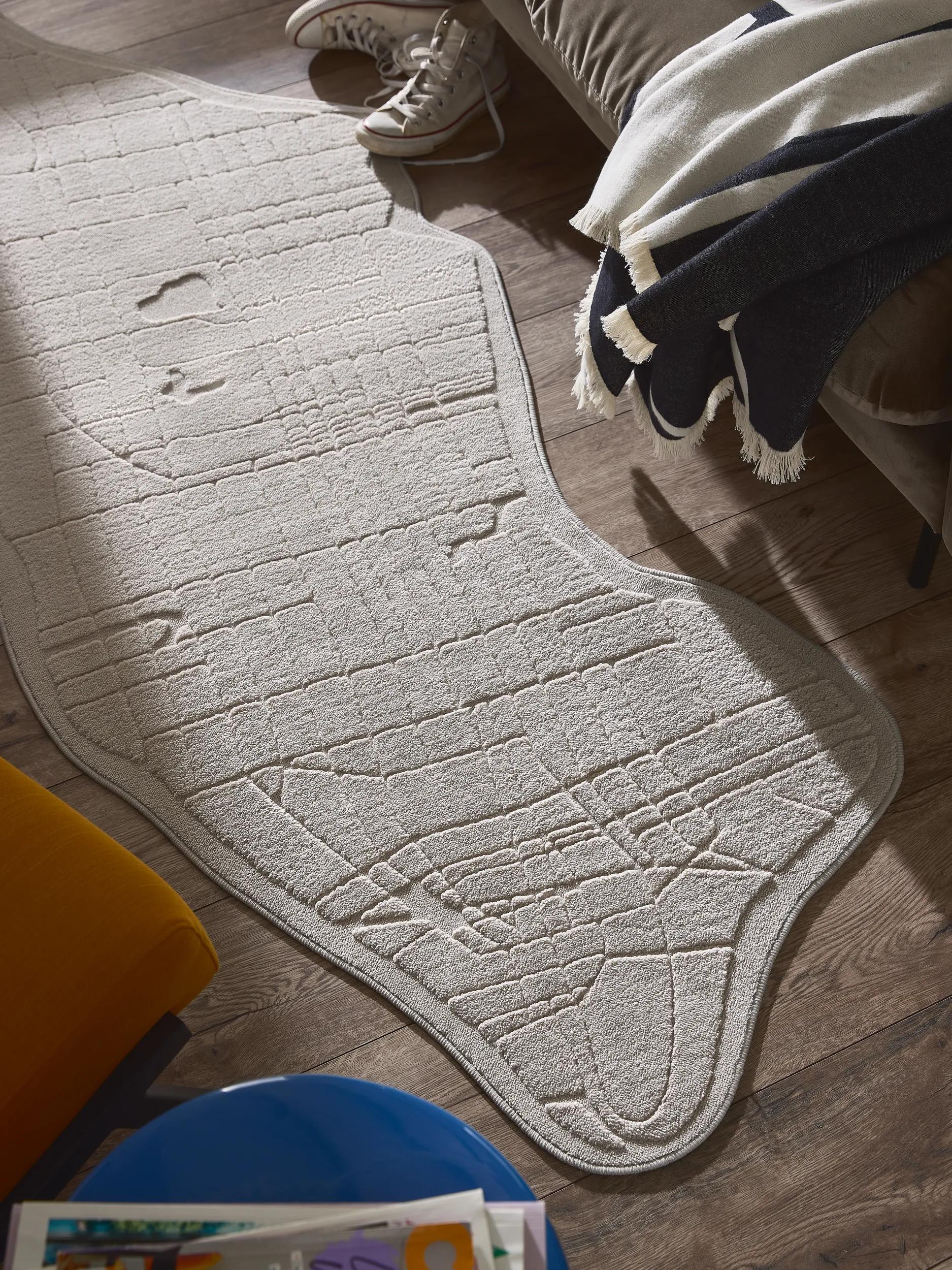 Pensé spécifiquement pour un couloir, son format met en scène la perspective et guide le regard en longueur. Avec ses 80x250 cm, il définit une circulation nette, centre visuellement la pièce et peut servir d'axe pour organiser un petit salon ou une entrée contemporaine. Installé entre consoles et banquettes basses, il rééquilibre l'espace et souligne la composition du mobilier sans alourdir la décoration.