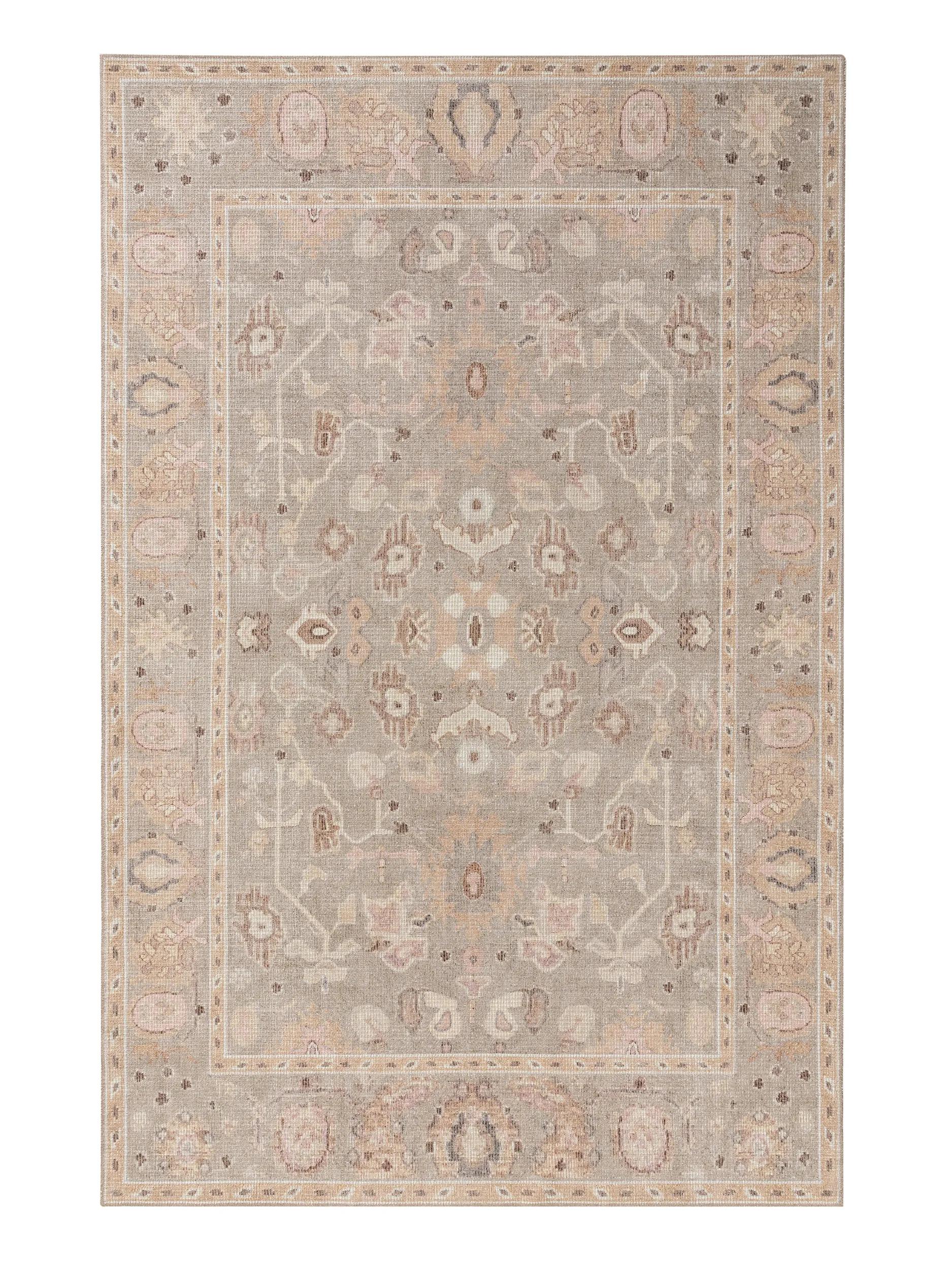 Sous le pas, ce tapis aux accents oriental révèle une histoire patinée : des teintes beige délicatement effacées par le temps dessinent des halos lumineux et créent des plages de silence chromatique. La surface joue de reliefs discrets et de nuances délavées qui sentent le vécu, comme si chaque motif avait été caressé par des générations. Le toucher promet une douceur feutrée, un confort immédiat qui invite à la lenteur et à la contemplation.