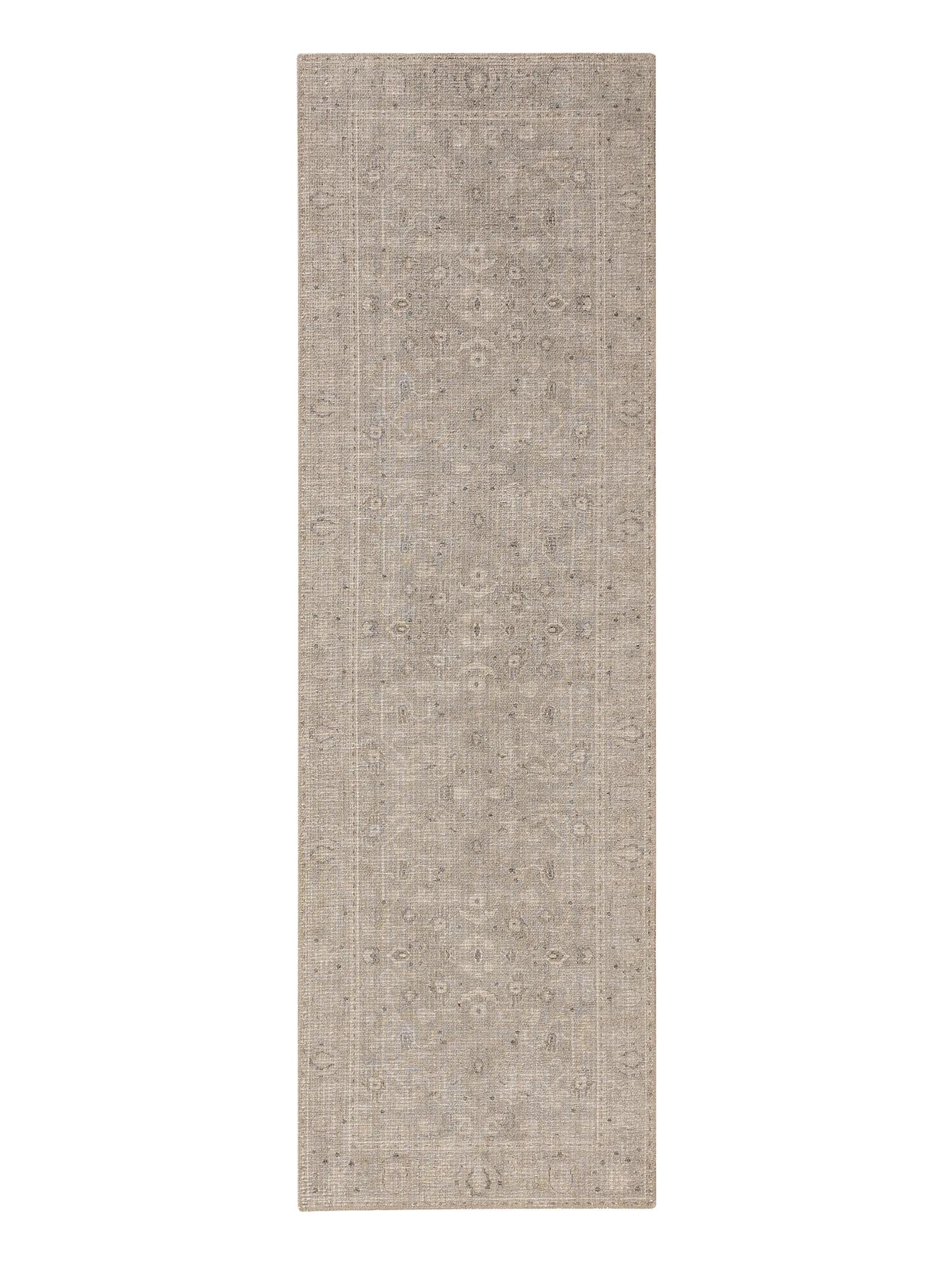 Dans une lumière douce qui semble avoir traversé les années, ce tapis évoque le murmure des intérieurs anciens où chaque fil porte une histoire. Le dessin respire la mémoire et l’usure choisie, offrant une présence qui apaise sans jamais effacer le détail. Les notes de gris et de beige se marient comme des pages jaunies, atténuant les contrastes pour mieux révéler la délicatesse des motifs hérités d’une tradition orientale.
