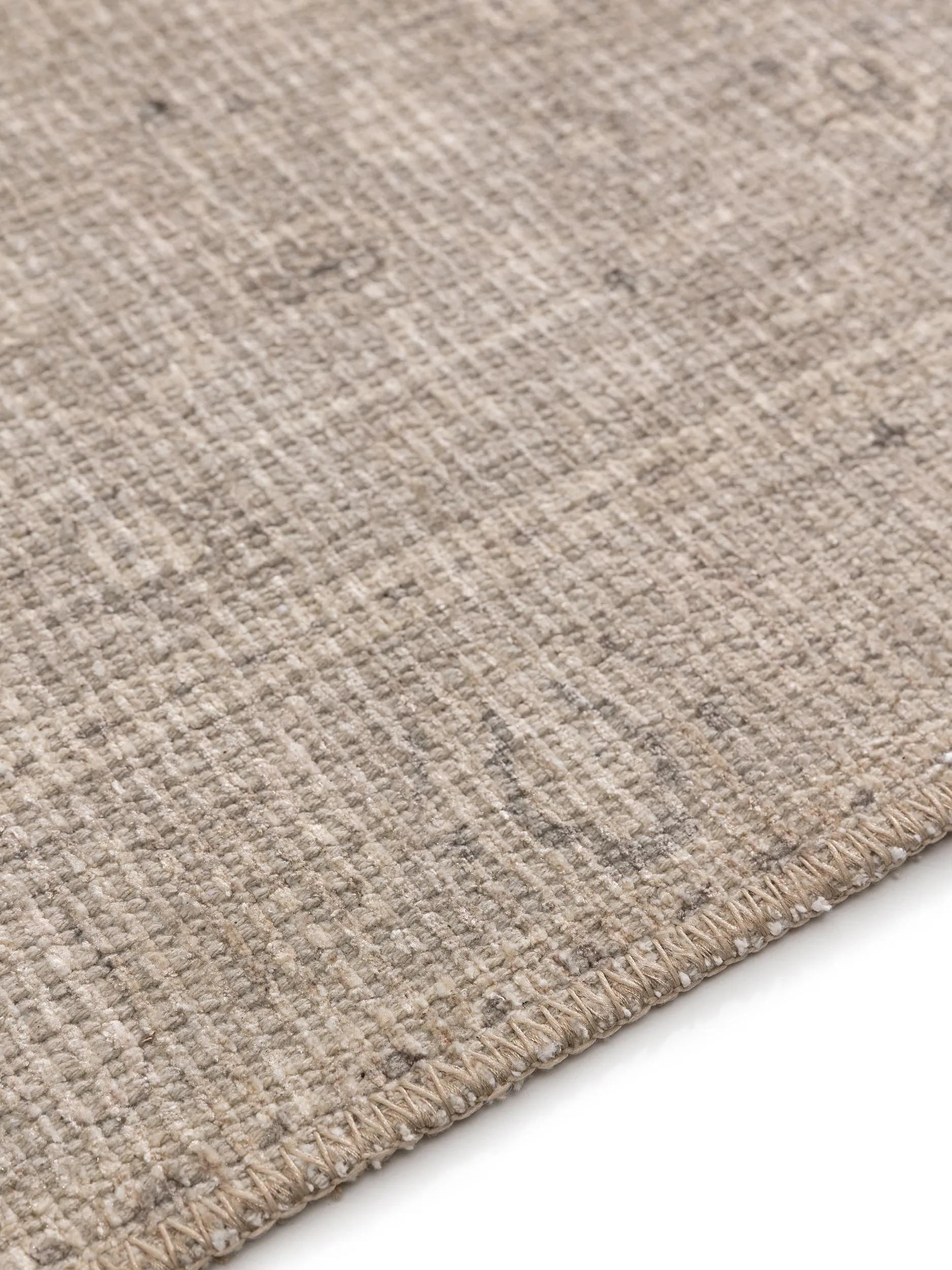 Autour des motifs, l’effet patiné joue avec la lumière et propose des nuances délavées, comme si le temps avait adouci les reliefs pour rendre le tapis plus accueillant. On devine des arabesques et des motifs géométriques anciens, subtilement réinterprétés, qui créent une profondeur visuelle et un rythme décoratif sans agressivité. Le rendu est à la fois riche et feutré, un équilibre entre présence graphique et silence chromatique.