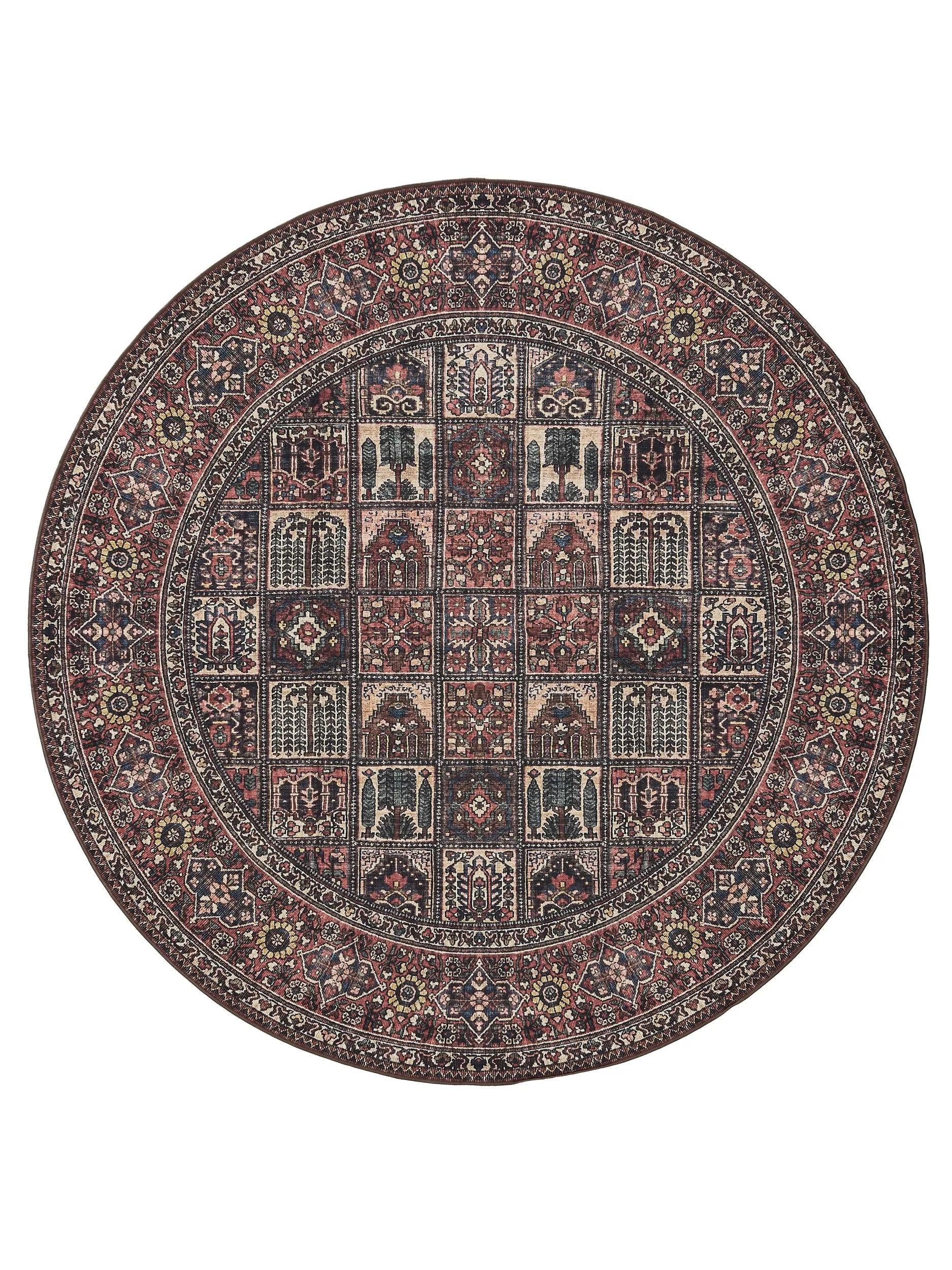 Tapis oriental motif ethnique rond multicolore lavable 120 cm de diamètre