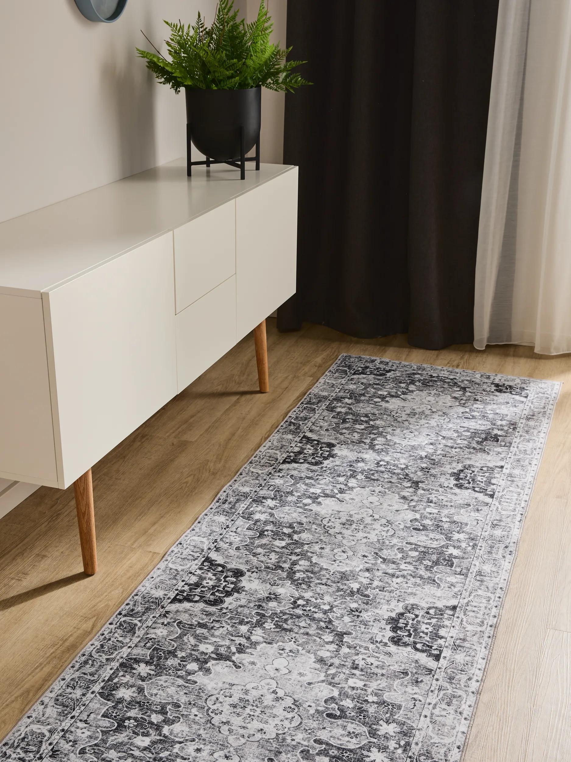 Tapis oriental vintage de couloir gris lavable 80x240 cm