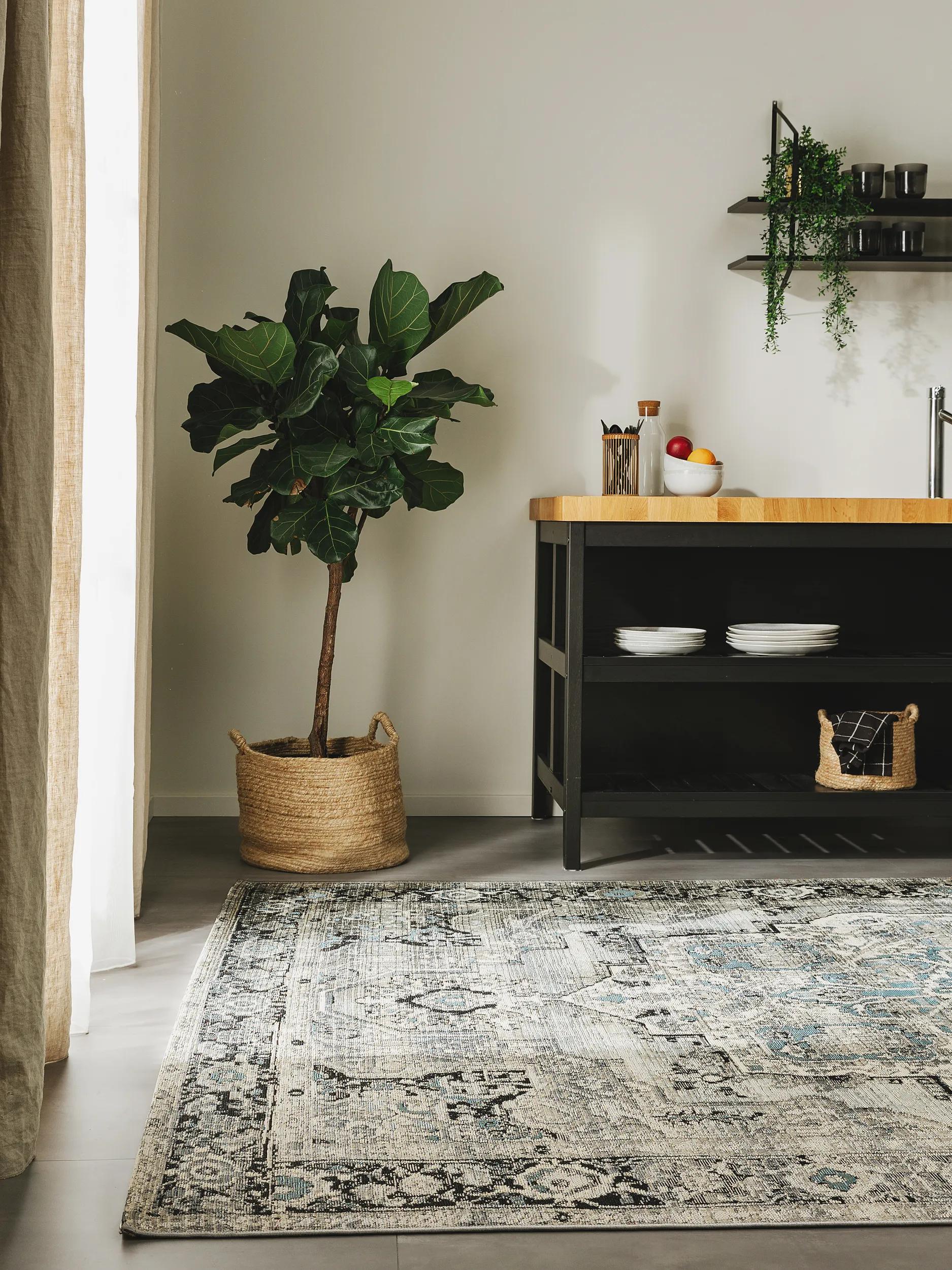 Tapis oriental vintage gris d'intérieur et d'extérieur 240x340 cm