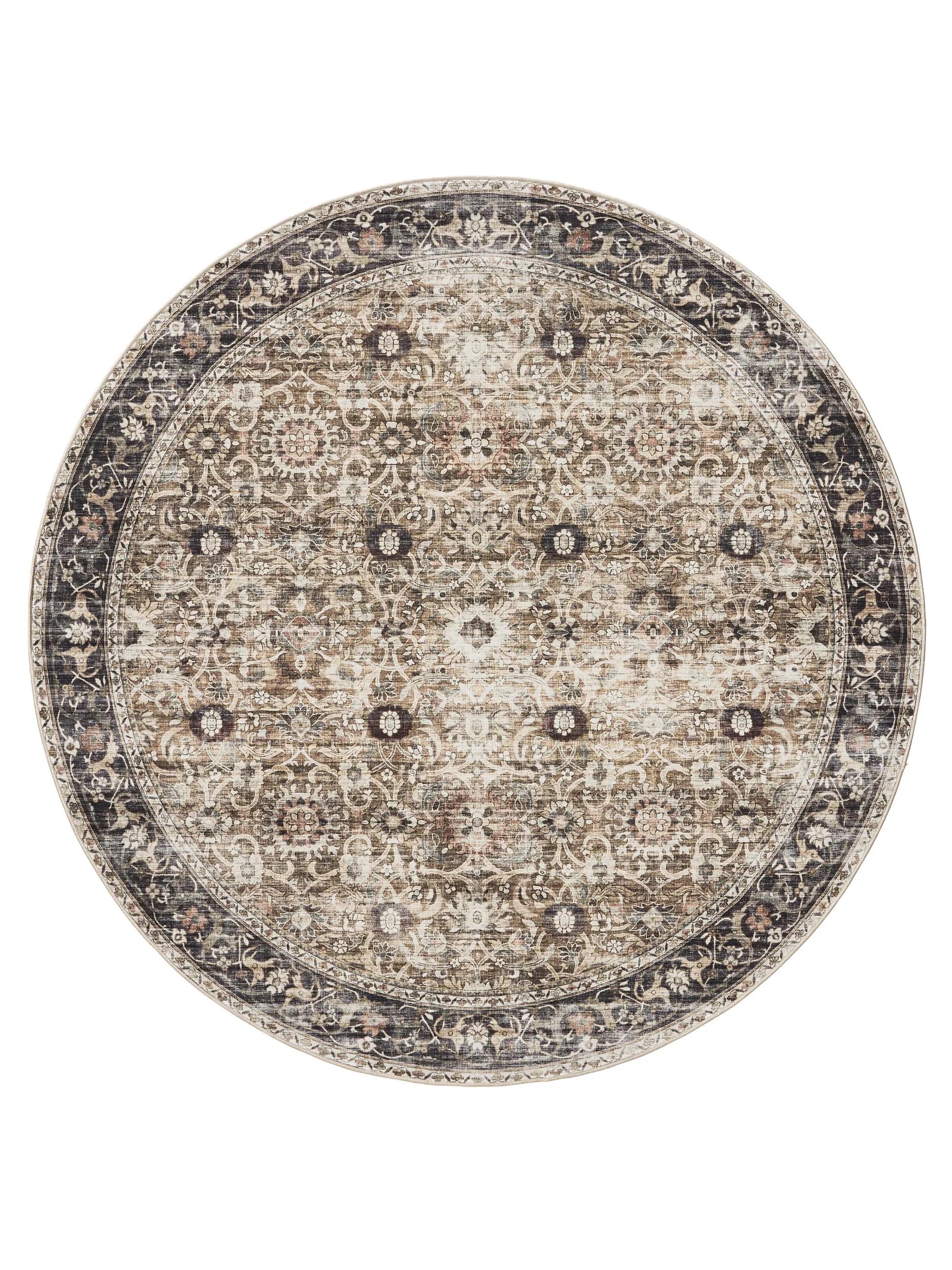 Tapis oriental vintage rond gris et marron lavable 160 cm de diamètre