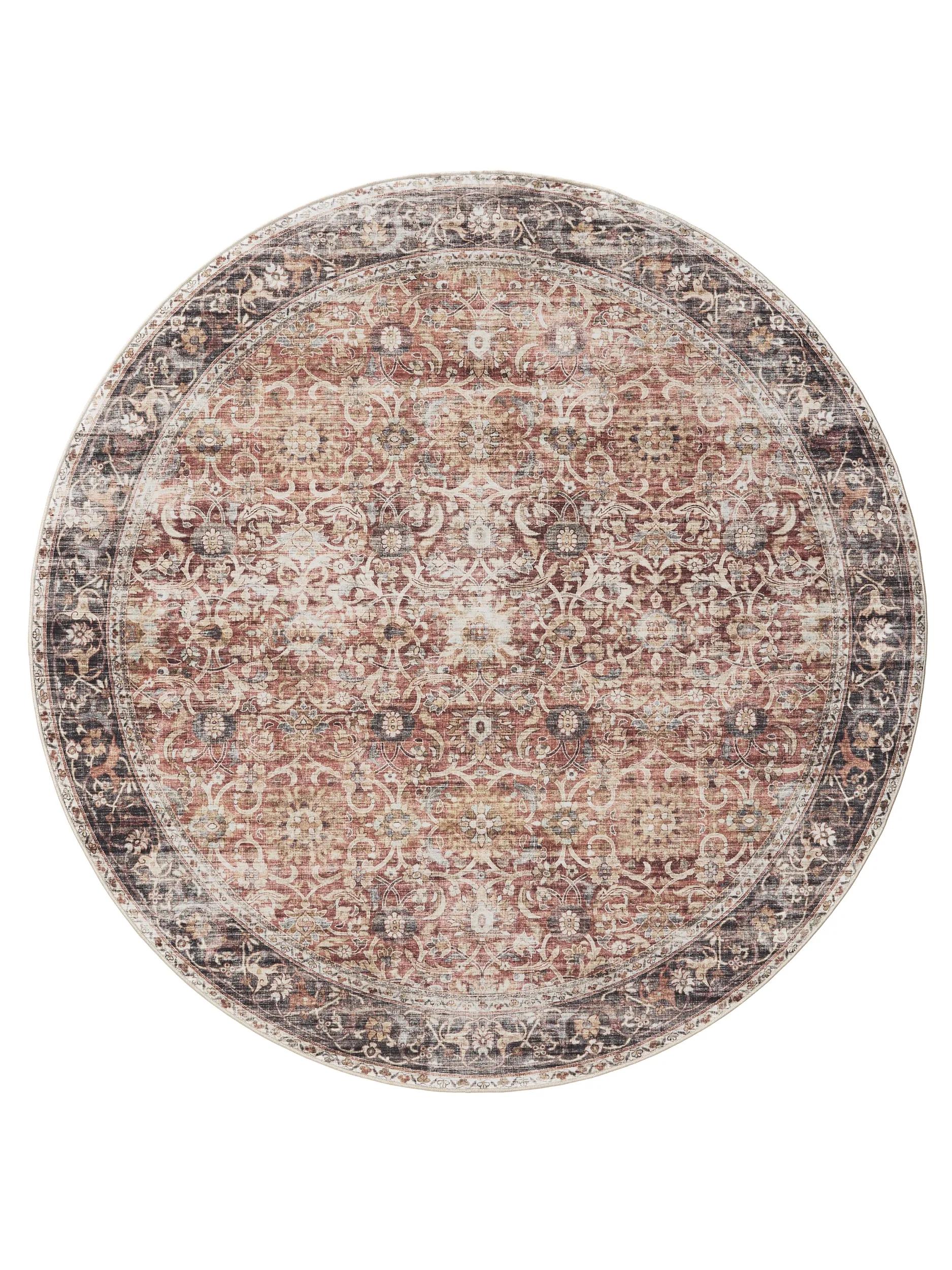 Tapis oriental vintage rond marron lavable 160 cm de diamètre