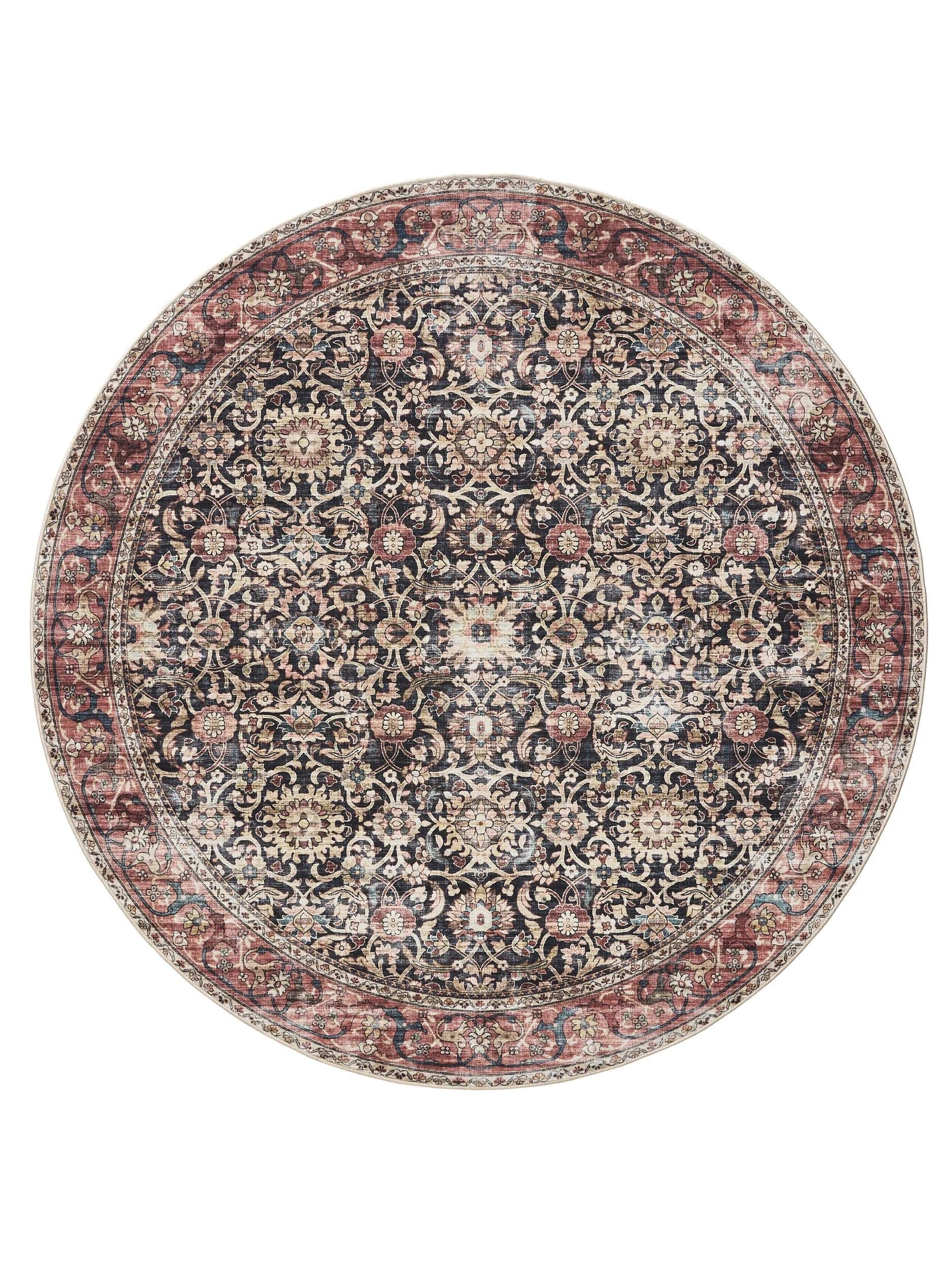 Tapis oriental vintage rond noir et marron lavable 120 cm de diamètre