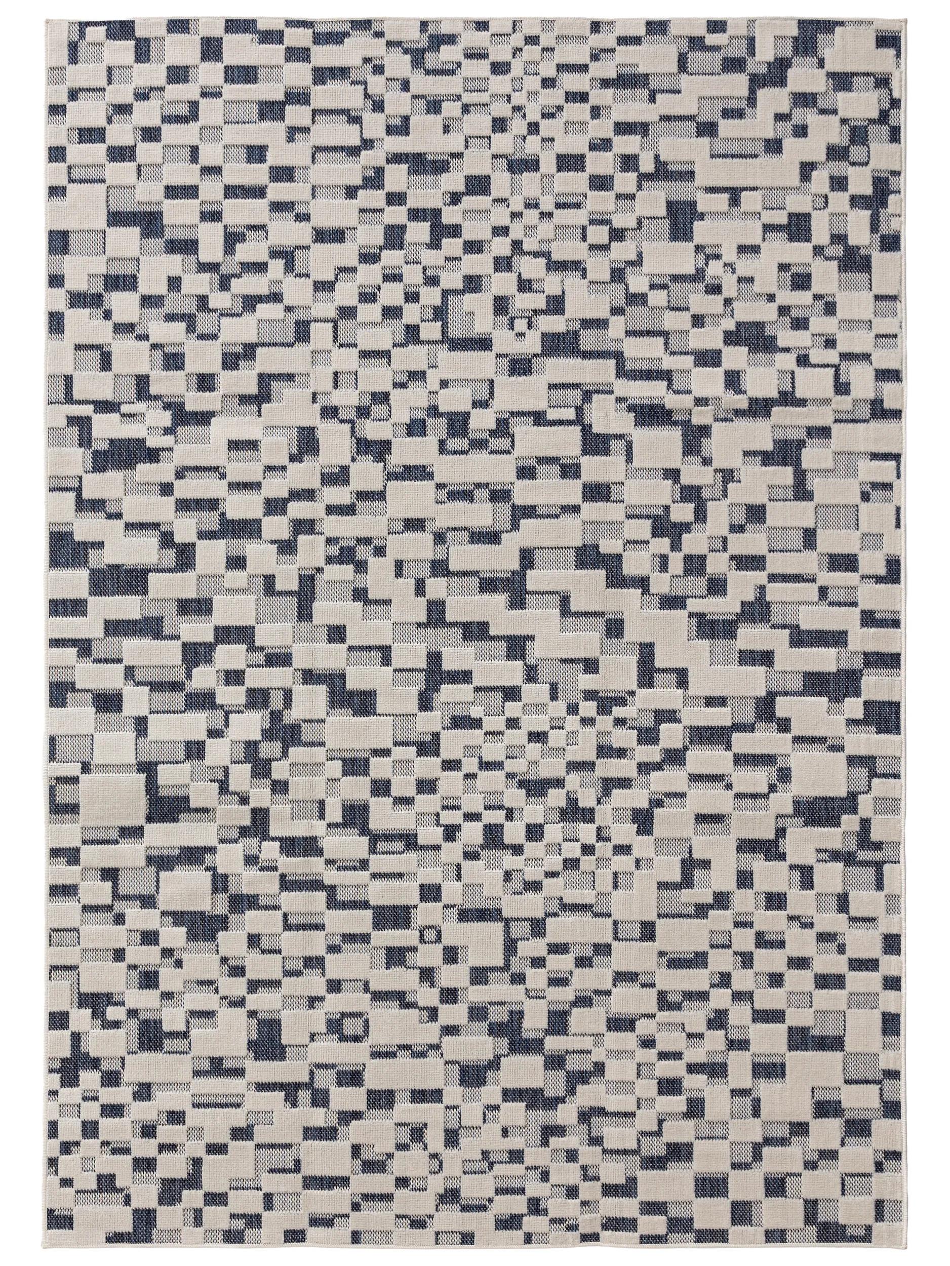 Tapis patchwork abstrait bleu et gris d'intérieur et d'extérieur 140x200 cm