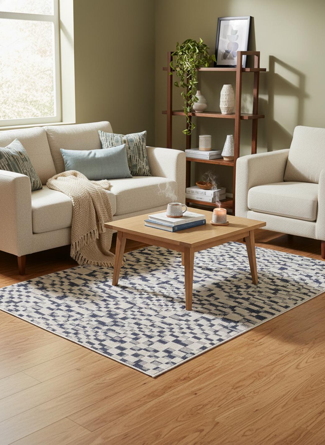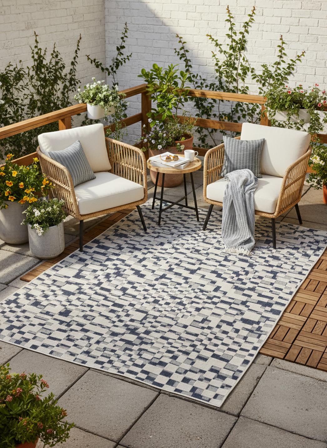 Contemporain et plein de caractère, ce tapis au style patchwork séduit par son allure abstraite et la subtilité de ses tons bleu et gris. Dans un format de 80x150 cm, il trouve parfaitement sa place sur une terrasse, un balcon ou un petit patio, apportant une touche artistique et moderne à la décoration extérieure. Son motif patchwork, mêlant formes et nuances, crée un jeu visuel dynamique et équilibré, évoquant les reflets de la mer et du ciel. Le bleu, frais et apaisant, s’associe au gris, sobre et élégant, pour former une harmonie à la fois douce et contemporaine. Ce tapis s’accorde idéalement avec les matériaux naturels comme le rotin, la pierre ou le bois clair, apportant profondeur et luminosité à l’ensemble. Placé sous une table ou dans un coin détente, il devient un véritable accent décoratif. Véritable pièce d’expression, il transforme les extérieurs en lieux modernes, apaisants et empreints d’un charme artistique discret.