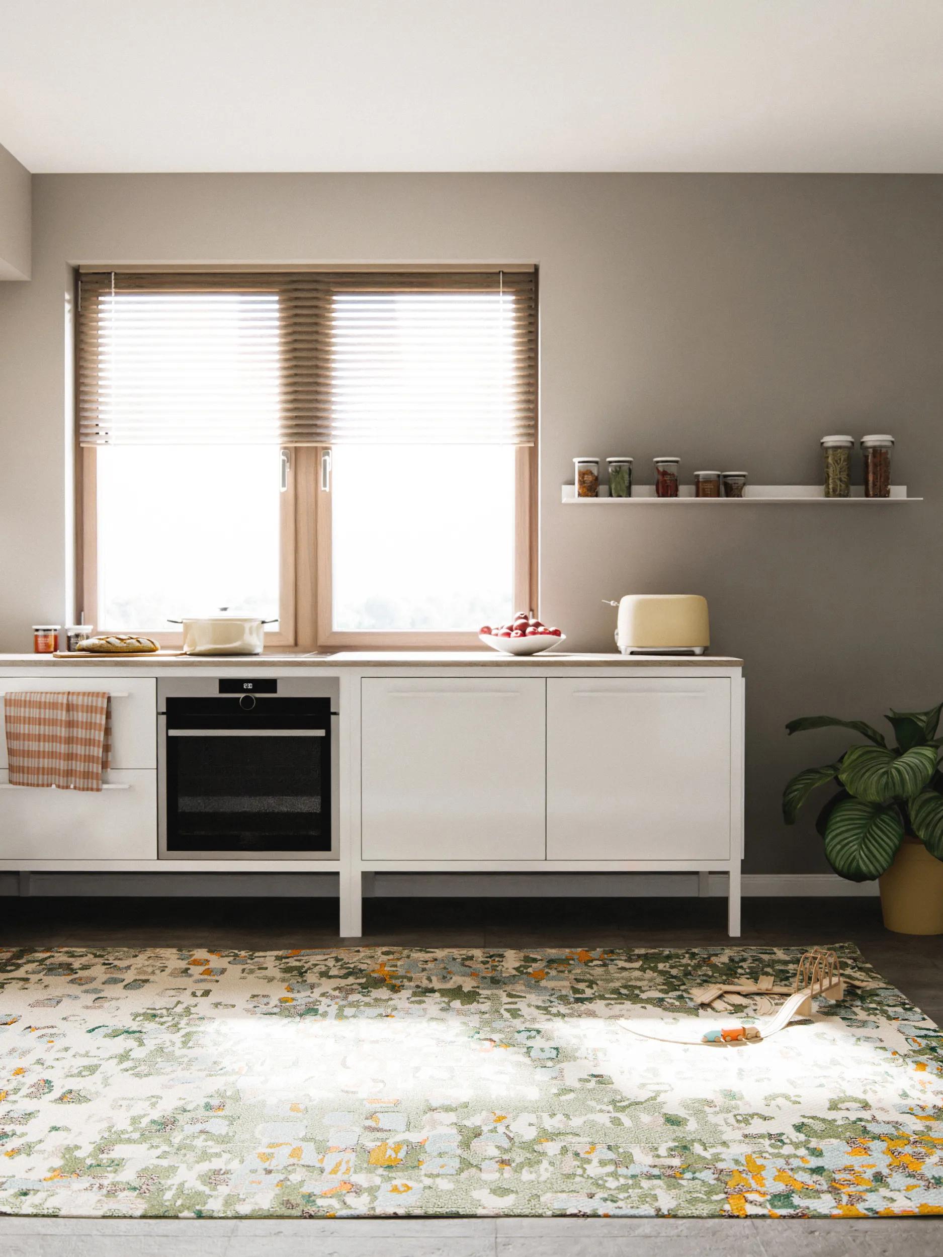 Dans un intérieur baigné de lumière, ce tapis réinvente l’équilibre visuel par des lignes apaisées et une présence délicate. Sa construction en sections fait dialoguer textures et volumes, offrant une mise en valeur subtile du mobilier et un point d’ancrage pour la pièce. La composition évoque une allure contemporaine tout en gardant une douceur accueillante, capable d’adoucir une grande salle de séjour ou de structurer un coin lecture.