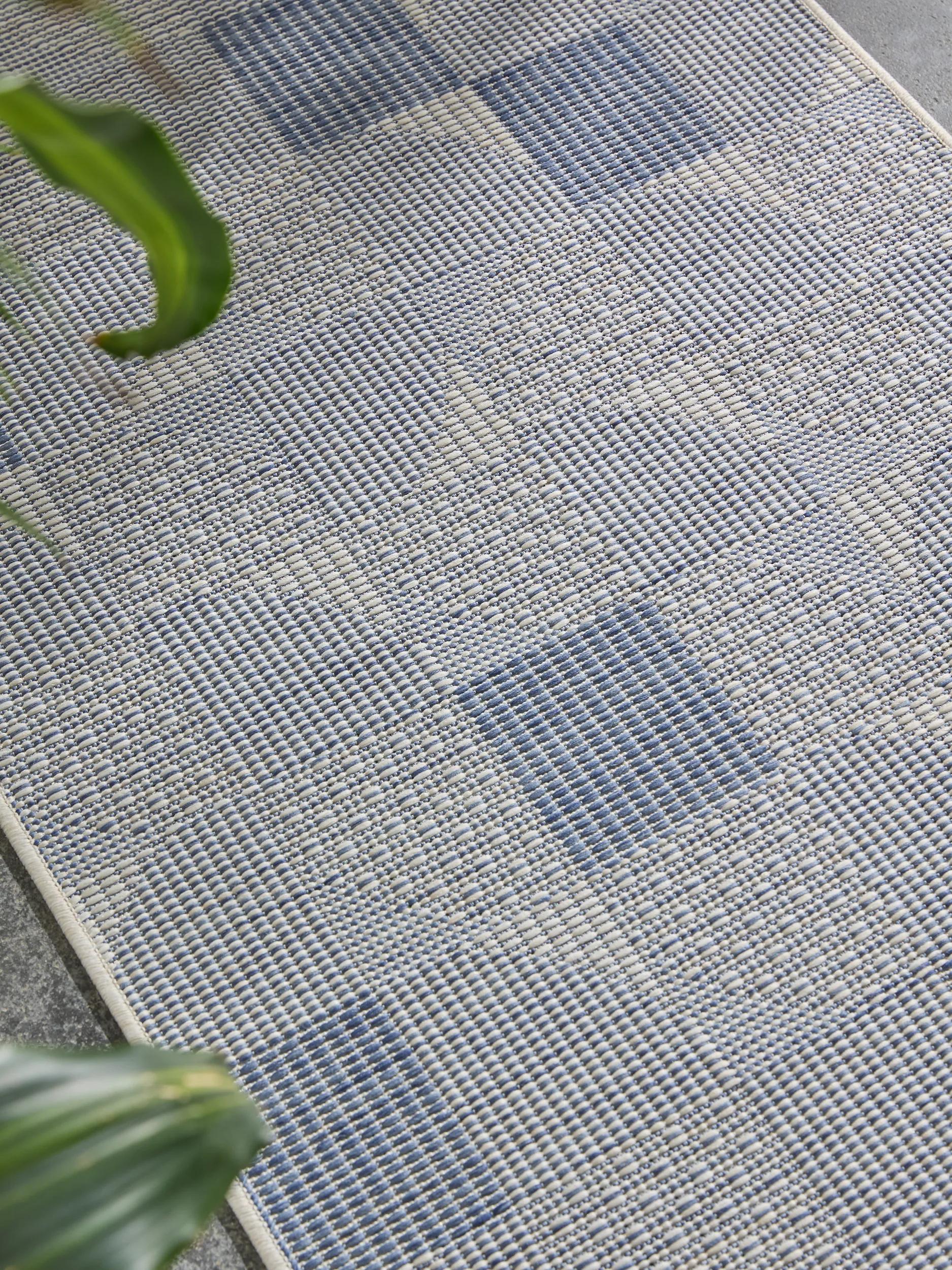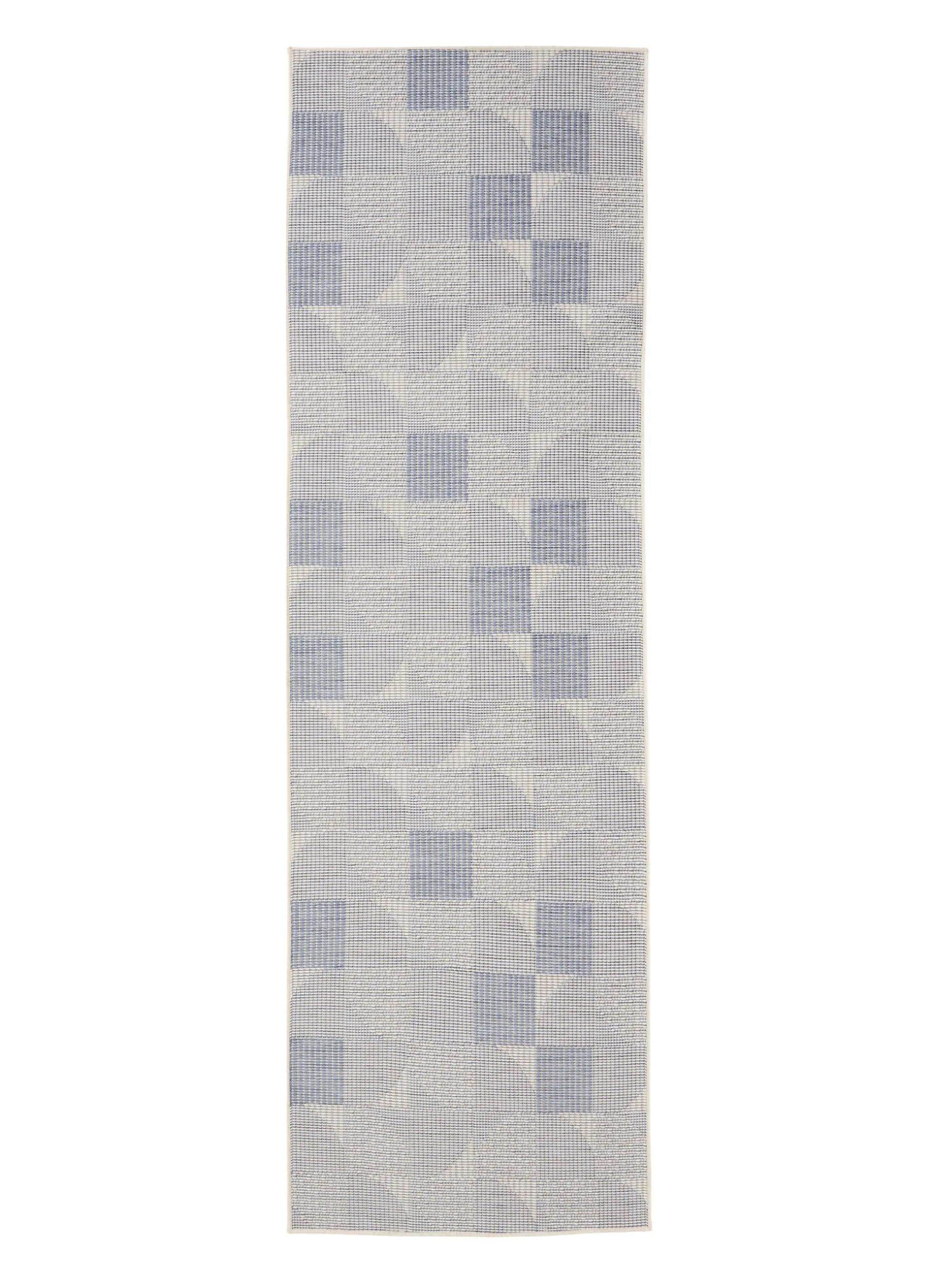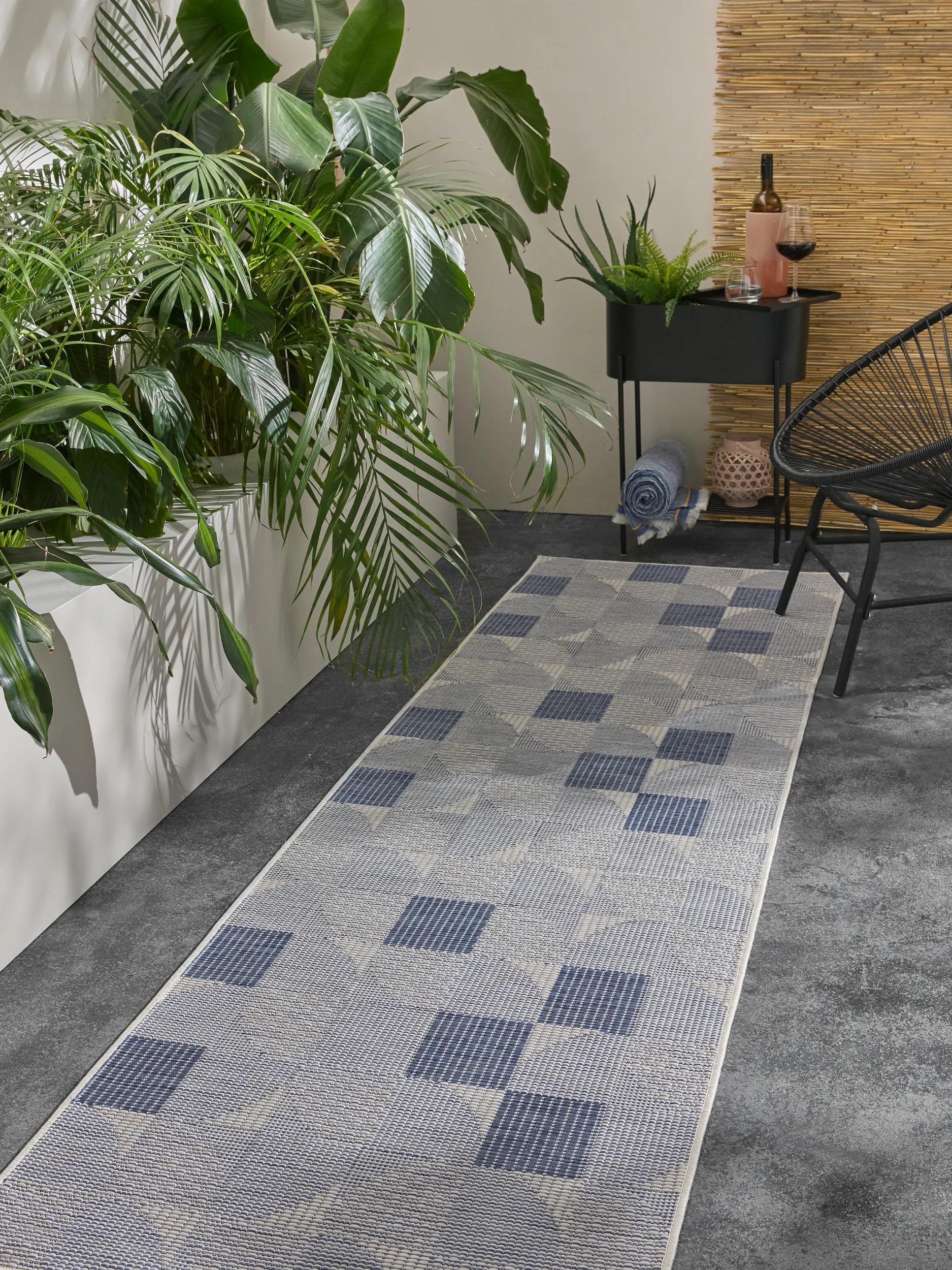 Tapis patchwork de couloir bleu et gris d'intérieur et d'extérieur 80x250 cm