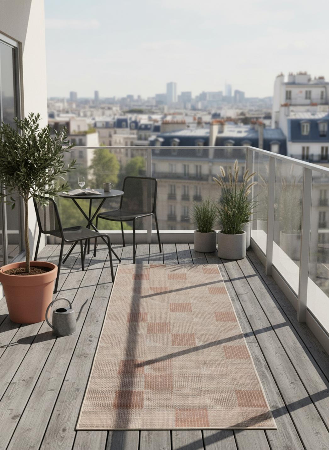Le long d’un passage lumineux ou sur un balcon chaleureux, le tapis patchwork terracotta diffuse une atmosphère à la fois vivante et apaisante. Son assemblage de motifs, inspiré des créations artisanales, compose une mosaïque harmonieuse où chaque nuance de terre semble dialoguer avec la lumière. La teinte terracotta, profonde et solaire, évoque la chaleur des paysages méditerranéens et s’accorde parfaitement aux matières naturelles comme le rotin ou le bois clair. En format 80x250 cm, il accompagne la circulation avec fluidité et habille les espaces étroits d’une touche de caractère. Ce modèle illustre la chaleur élégante de la collection de tapis d’extérieur, où les teintes naturelles s’associent à la richesse des textures. Sa surface tissée à plat révèle de subtiles variations de ton selon la lumière, renforçant la vitalité du motif. On retrouve cette même énergie douce dans la sélection de tapis de balcon, parfaite pour apporter une note accueillante et solaire aux passages extérieurs. Un tapis qui allie authenticité et chaleur pour un espace vivant et harmonieux.