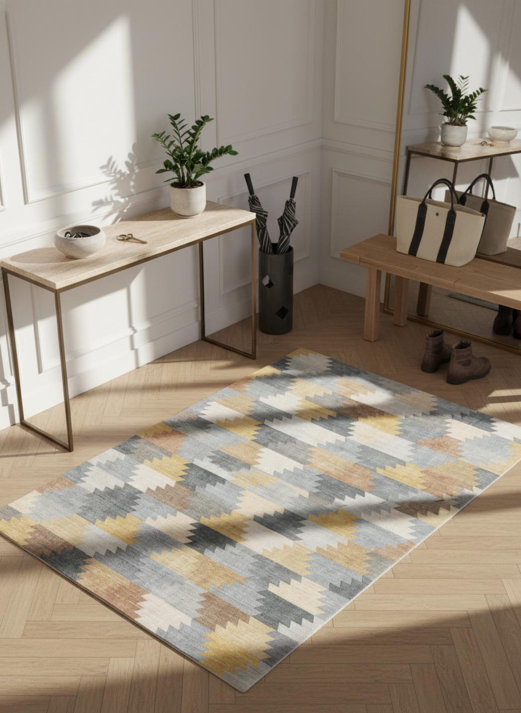 Découvrez comment ce tapis devance la simple décoration pour devenir une toile au sol, un assemblage vivant où jaune et bleu composent une partition visuelle raffinée, fidèle à l’univers du patchwork et parfaitement adapté à l’échelle du 80x150 cm. collection complète de tapis patchwork