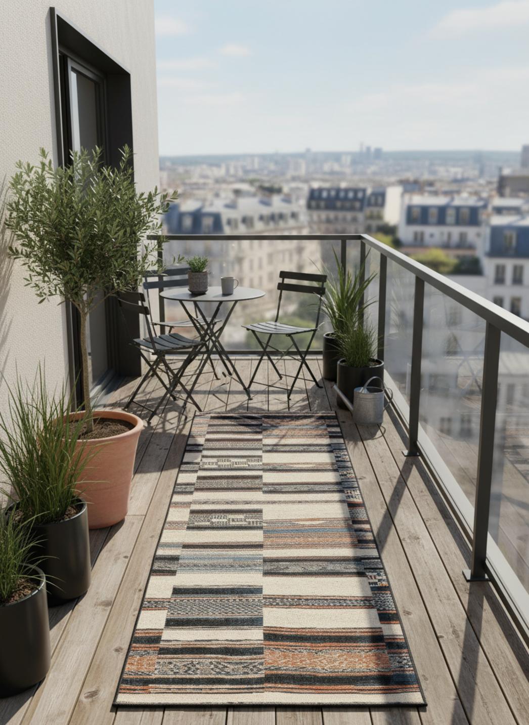 Coloré et plein de caractère, ce tapis au style patchwork s’inspire de l’art ethnique et séduit par la richesse de ses tons multicolores. Dans un format de couloir de 80x250 cm, il s’étire avec élégance sur une terrasse, un balcon ou une allée extérieure, où il insuffle énergie et authenticité. Son motif patchwork mêle formes géométriques et inspirations traditionnelles, créant une mosaïque vivante et harmonieuse. Les couleurs, vibrantes et équilibrées, évoquent la chaleur des décors artisanaux et la gaieté des ambiances estivales. Ce tapis se marie à merveille avec les matériaux naturels comme le bois, la pierre ou le rotin, qu’il illumine par ses nuances chatoyantes. Parfait pour relier deux espaces ou souligner un passage extérieur, il apporte rythme et personnalité à la décoration. Véritable accent de style, il transforme les extérieurs en lieux accueillants, expressifs et empreints d’un charme bohème et coloré.