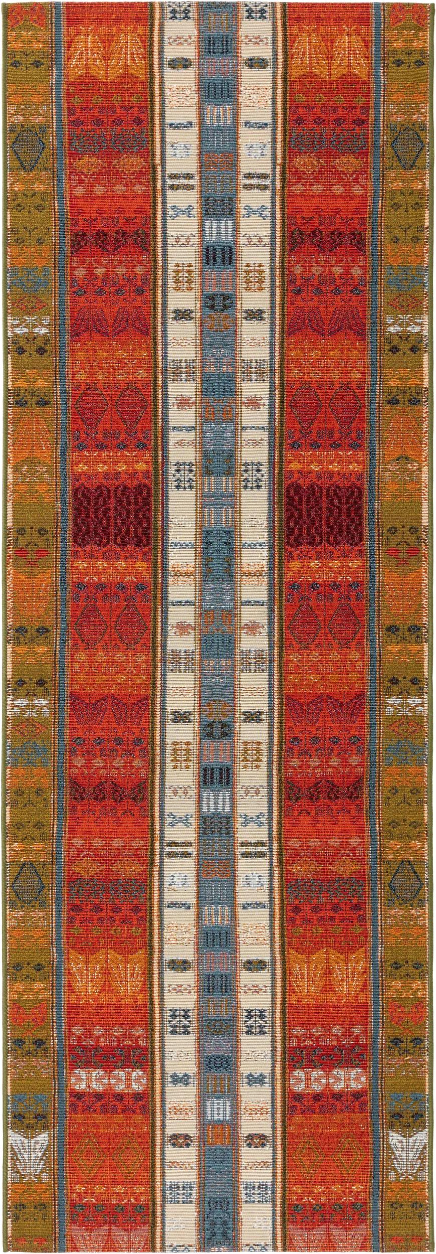 Tapis patchwork motif ethnique de couloir tons rouge et multicolore d'intérieur et d'extérieur 80x250 cm