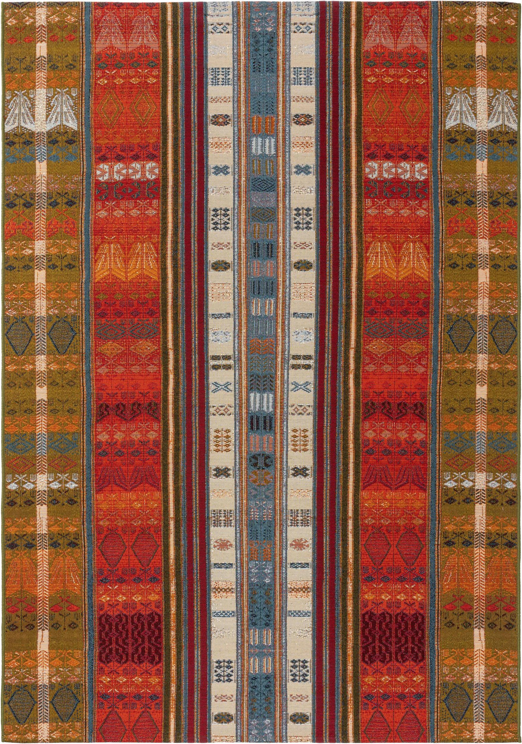 Tapis patchwork motif ethnique tons rouge et multicolore d'intérieur et d'extérieur 80x165 cm