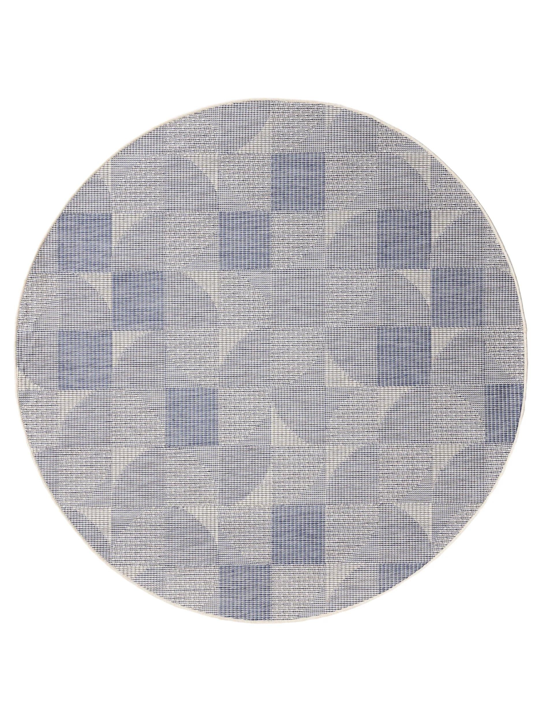 Tapis patchwork rond bleu et gris d'intérieur et d'extérieur 200 cm de diamètre
