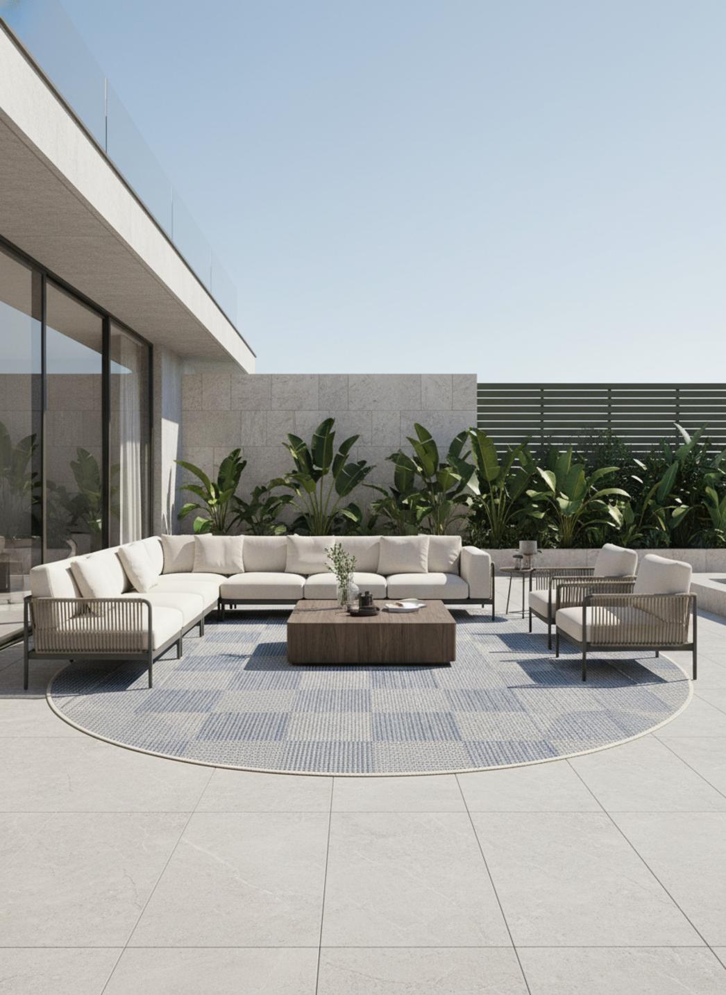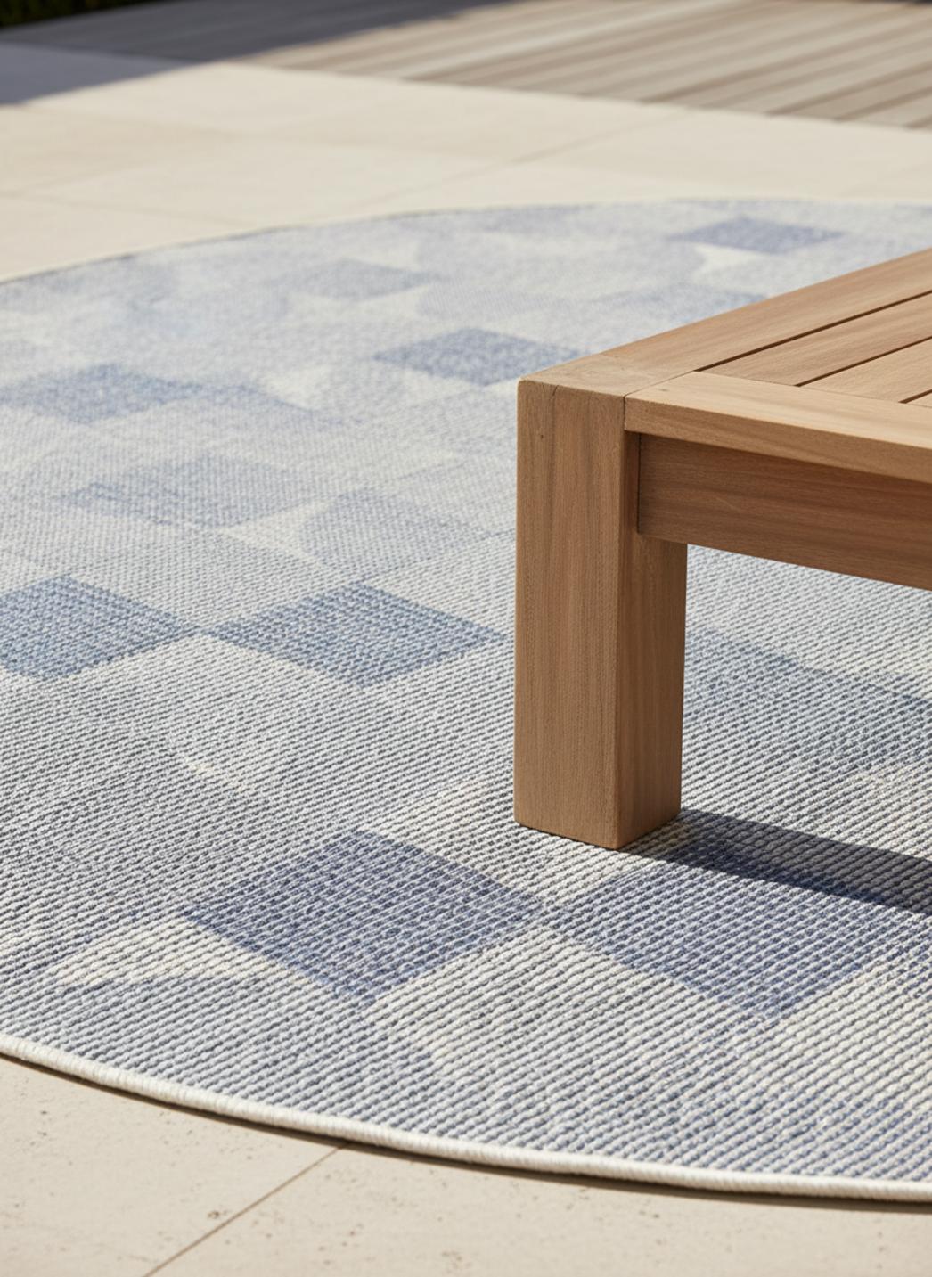 Le tapis patchwork rond bleu et gris marie harmonieusement modernité et douceur dans un design équilibré. Sa forme circulaire apporte fluidité et apaisement, tandis que la combinaison du bleu et du gris crée une atmosphère sereine, propice à la détente. Les nuances se fondent les unes dans les autres, évoquant les reflets changeants de la mer ou du ciel au crépuscule. Par son diamètre de 200 cm, il s’impose comme une pièce maîtresse dans un salon, sous une table ou au cœur d’un espace extérieur. Ce modèle traduit la finesse décorative de notre sélection de tapis d’extérieur, où matière et lumière s’unissent pour créer des décors harmonieux. Son tissage à plat révèle de subtils contrastes selon l’éclairage, donnant vie au motif patchwork. On retrouve cette même élégance apaisée dans la gamme de tapis d’extérieur ronds, idéale pour adoucir les lignes d’un espace et créer une atmosphère conviviale. Un tapis qui évoque la quiétude des instants partagés en plein air.