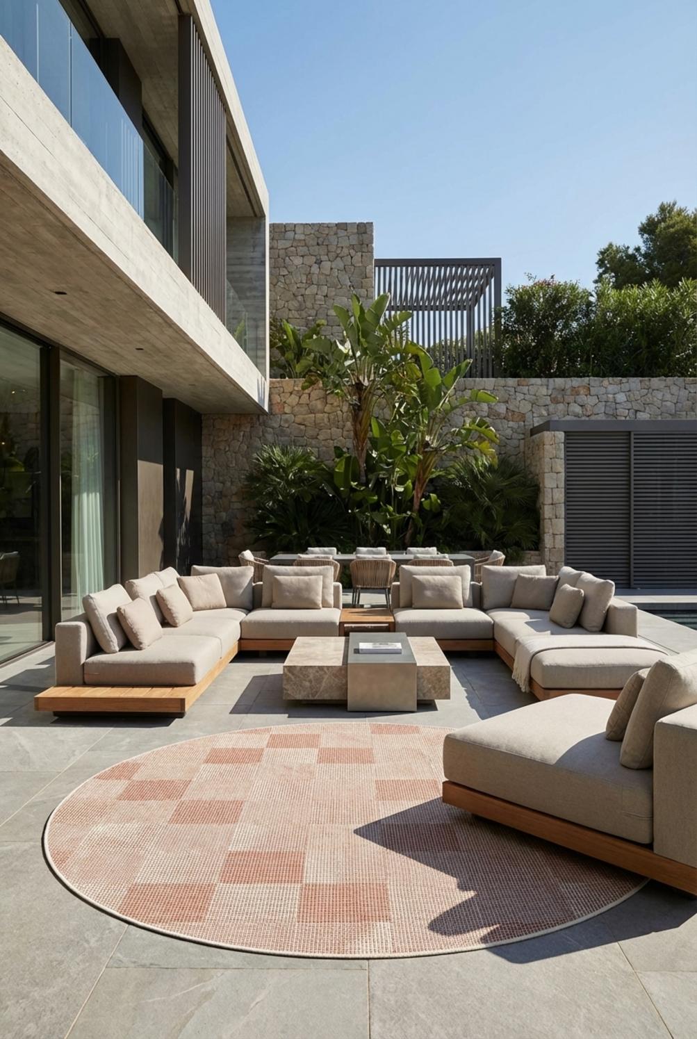 Ce tapis patchwork rond terracotta révèle une composition harmonieuse où chaque fragment semble capturer un éclat de lumière et de matière. Sa forme circulaire de 200 cm de diamètre adoucit les lignes du mobilier et crée un point central chaleureux sur la terrasse ou le patio. Les nuances terre cuite, oscillant entre ocre, cuivre et argile, évoquent les pigments naturels et la chaleur vibrante des paysages méditerranéens. Les motifs, subtilement juxtaposés, composent un ensemble vivant et équilibré, entre tradition artisanale et modernité décorative. Sous la lumière du jour, le terracotta diffuse une aura solaire et apaisante, transformant l’espace en un lieu de convivialité et de confort. Ce tapis d’intérieur et d’extérieur incarne la beauté du mélange et l’élégance de la simplicité, invitant à savourer la douceur d’un moment suspendu, entre ombre et soleil.