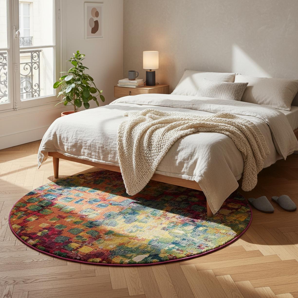 Tapis patchwork style peinture rond multicolore 120 cm de diamètre