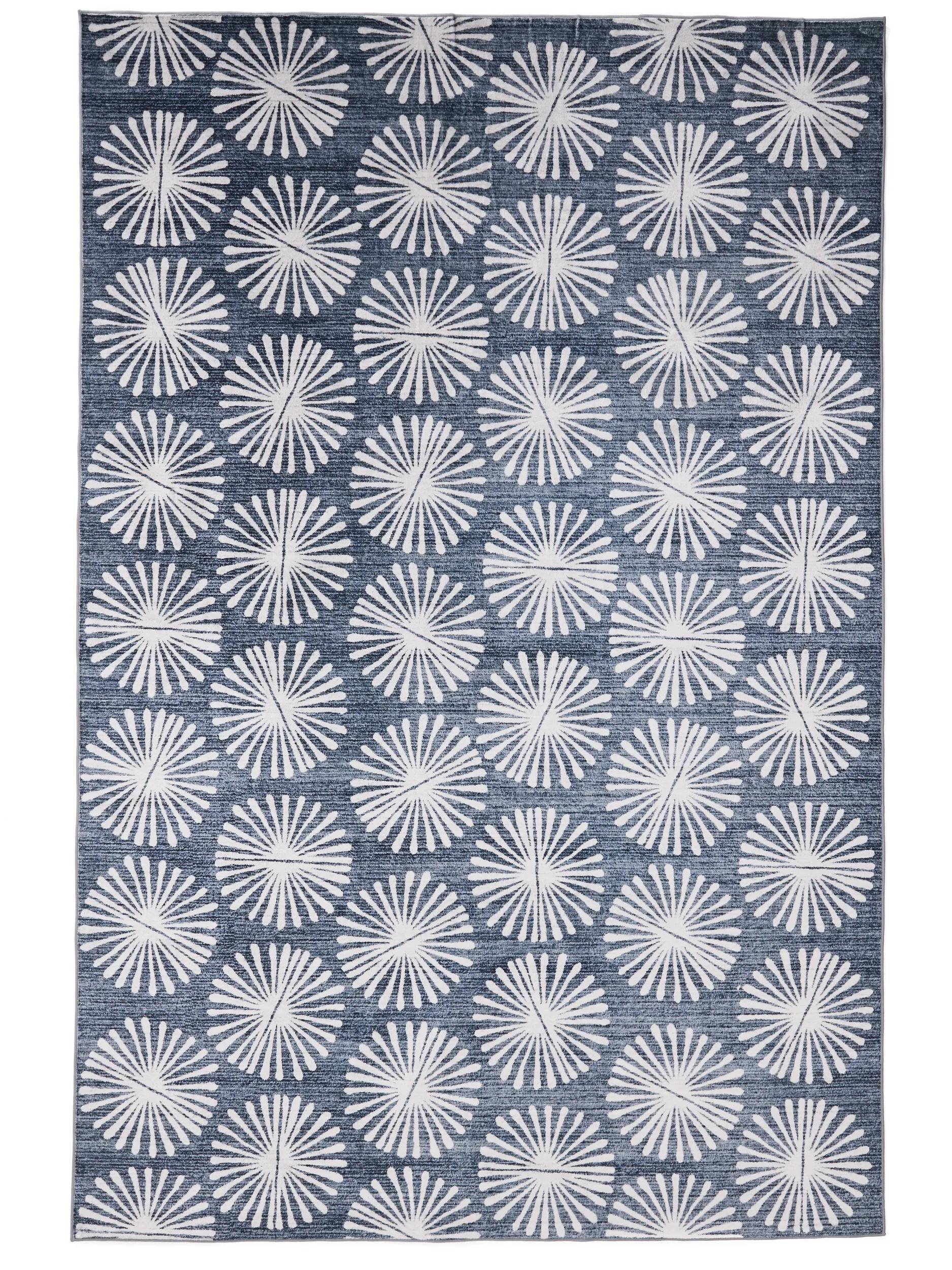 Tapis retro motif à fleurs bleu et blanc 160x230 cm