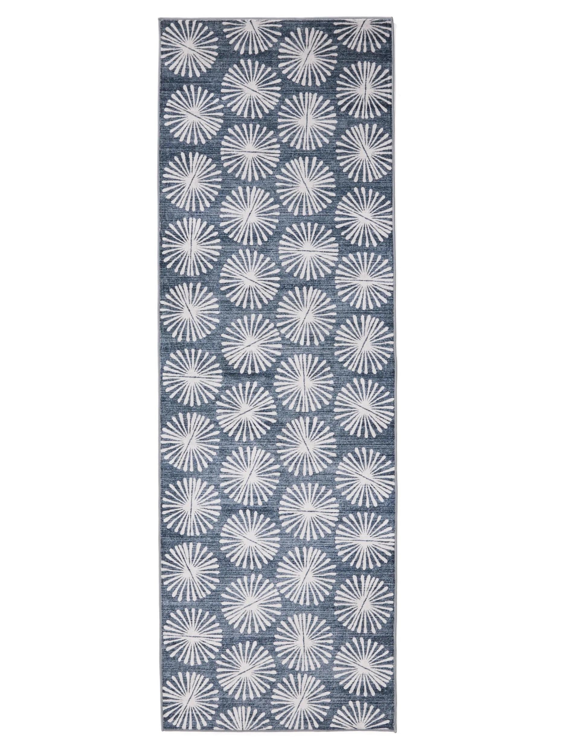 Tapis retro motif à fleurs de couloir bleu et blanc 80x240 cm