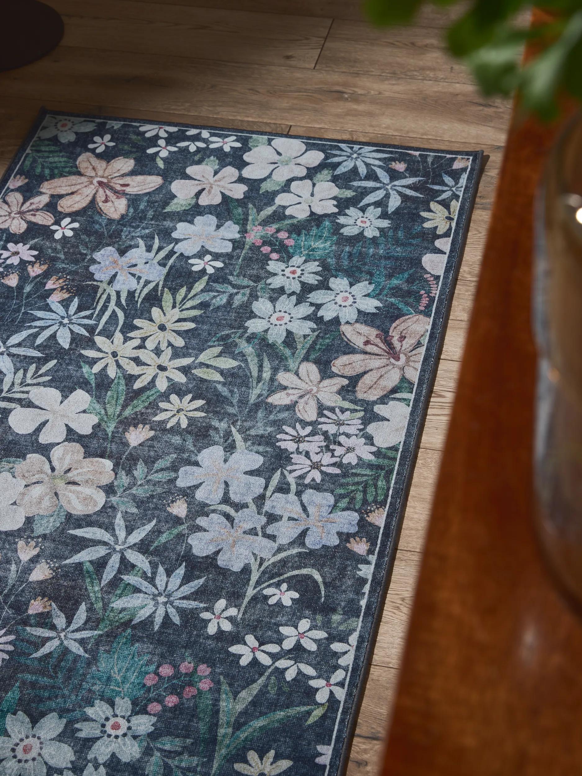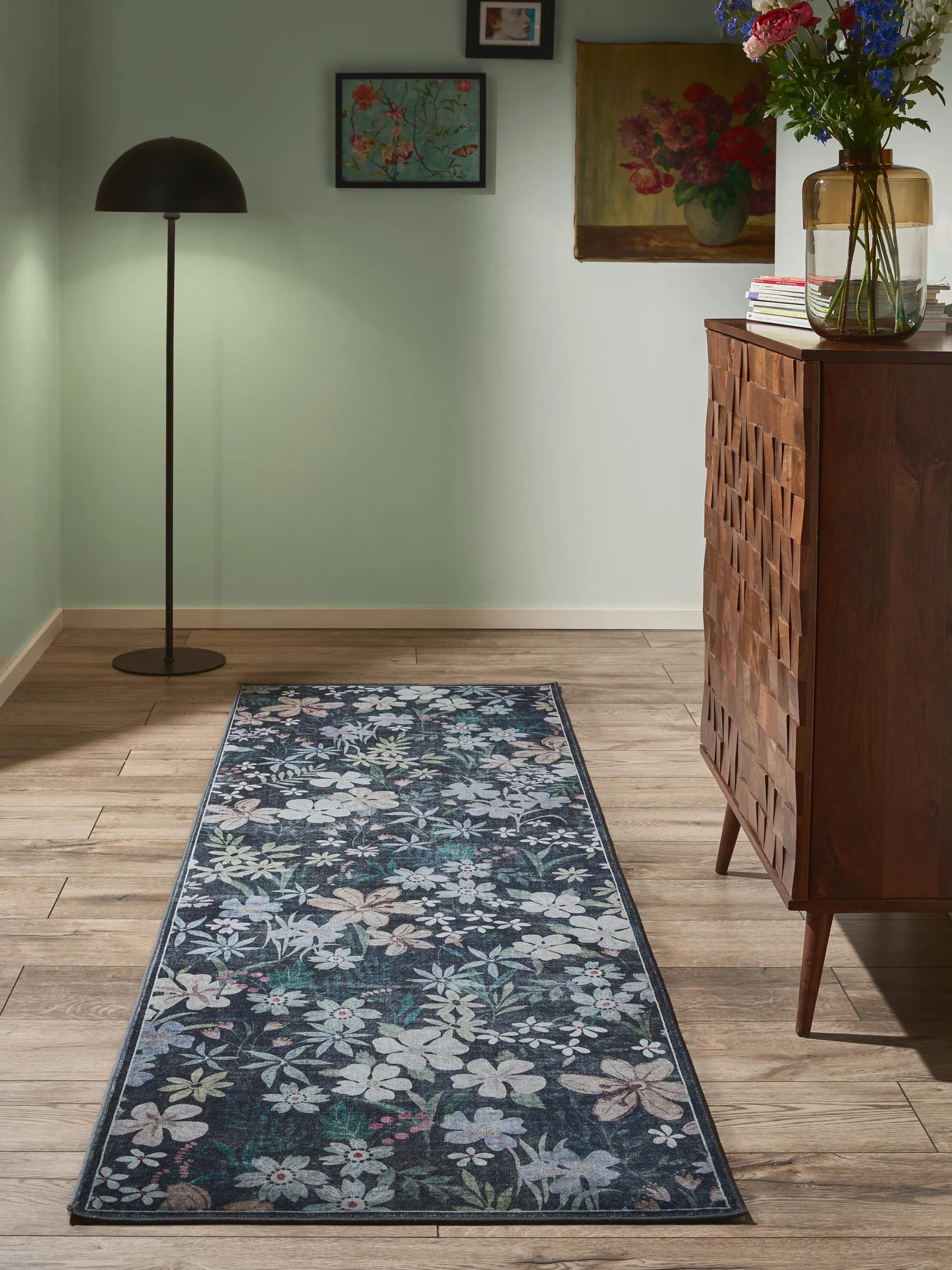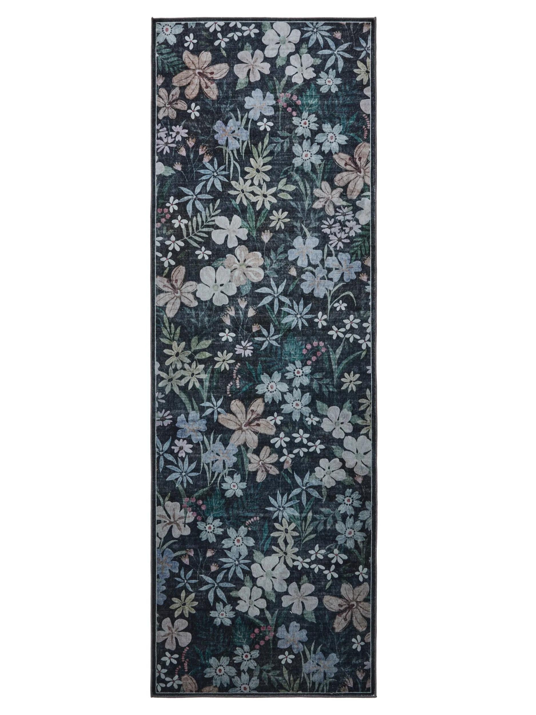 Tapis rétro motif à fleurs de couloir multicolore et noir 80x240 cm