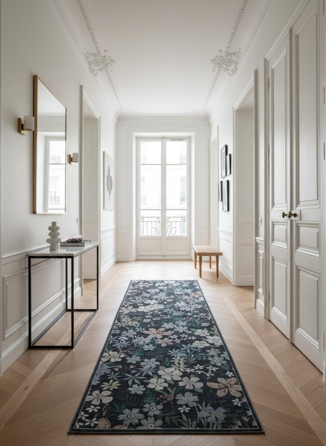 Pensé pour une longueur maîtrisée, ce modèle en 80x240 cm s'adapte naturellement à la dimension d'un couloir : il crée un flux visuel continu, ouvrant la perspective et transformant le passage en un véritable trait d'ambiance, évoquant les couloirs chaleureux des appartements mid-century. Sa présence équilibrée apporte une ligne vintage modernisée, parfaite aussi pour un coin lecture ou une chambre au décor rétro chic.